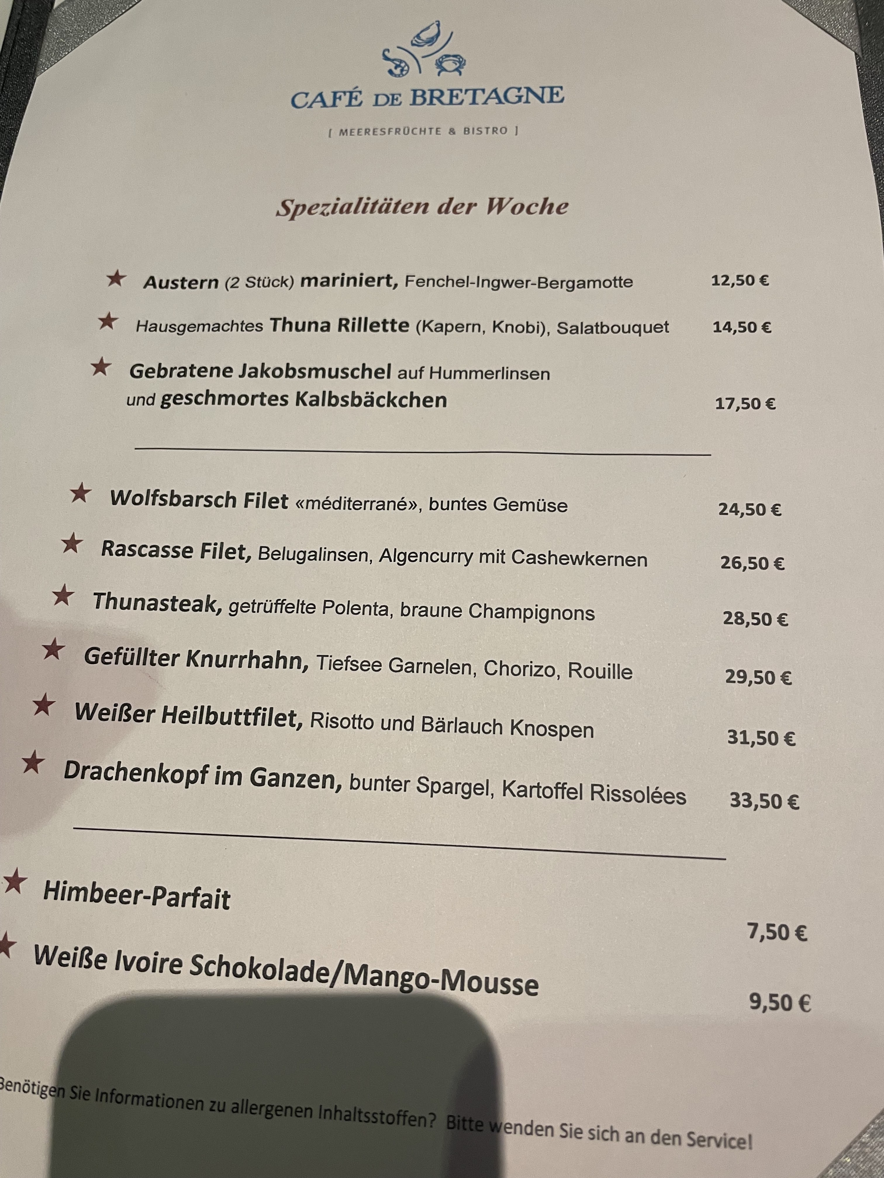 💬 C'est une découverte pour moi. Première fois que je mange dans ce restaurant. L'ambiance y est très agréable et l'accueil chaleureux. J'ai pris une bière pression, une référence en Allemagne, une entrée à partager avec du pain chaud pour se mettre d'appétit et enfin un plat à base de poisson. Les aliments étaient frais et très savoureux de moins point de vu accompagné de vin blanc. Merci pour l'accueil.