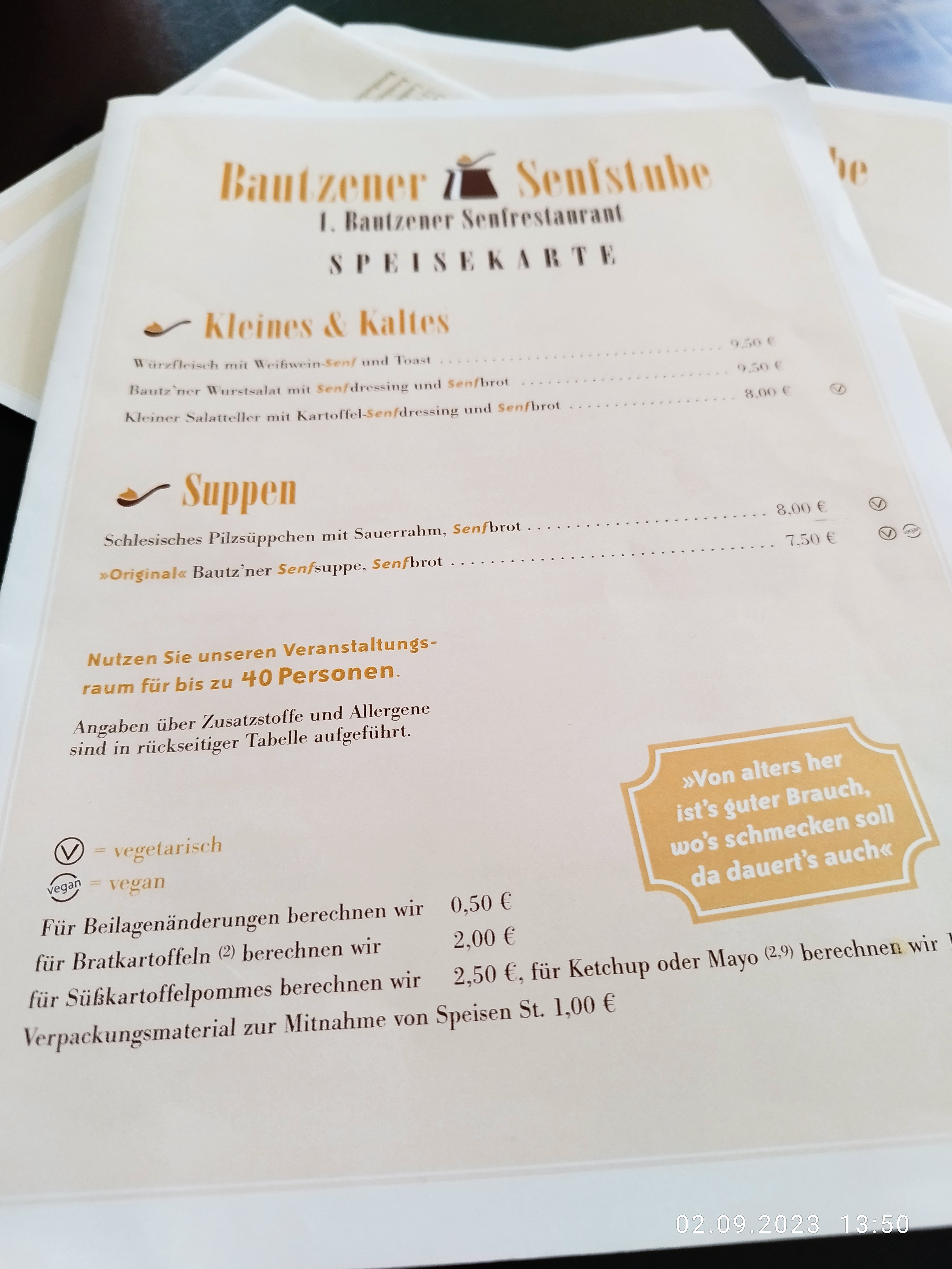 💬 C'était une belle fête du 85e anniversaire avec café, gâteau et dîner. Avec une ambiance sympa, un service bon et très courtois (beamer). Cependant, certains clients se sont plaints de la nourriture : le gâteau avait un goût de plat cuisiné décongelé, les frites étaient froides et non croustillantes, le steak avec une "sauce en sac". Malheureusement, nous avons constaté par la suite une erreur dans la facture du divertissement. La facture a été contestée et nous avons reçu un bon pour le montant payé en trop. Aucun regret ne nous a été exprimé. L'excuse qui nous a été donnée était que l'annulation n'avait pas été effectuée. Nous vous recommandons donc de vérifier la facture lorsque vous la recevez. Même si cela peut donner une impression de méfiance.