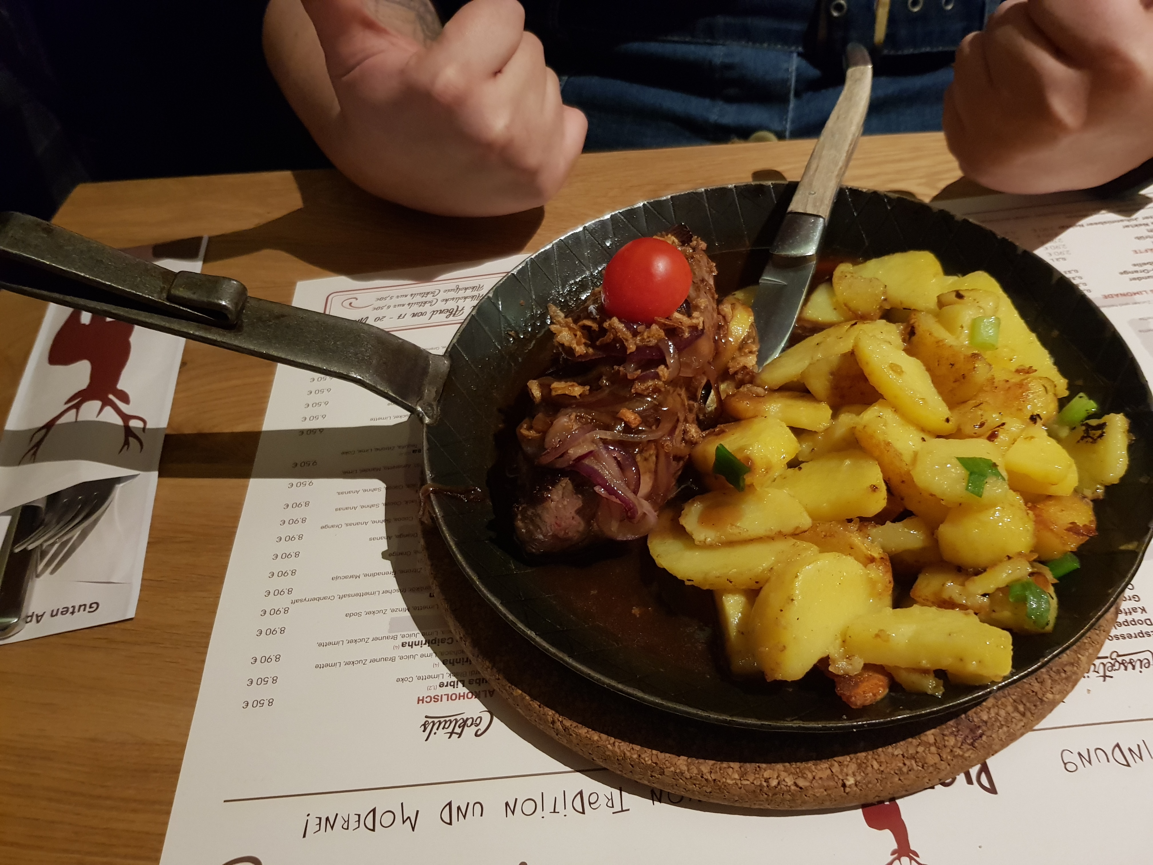 💬 Service et ambiance au top. En revanche, les prix sont complètement déconnectés avec ce qu'on vous sert dans l'assiette - à 22 euros et des miettes un morceau très modeste de "ribeye" ( pour moi plus un onglet...) sans garniture inclus. Les légumes pris en supplément ( 6 € !) consistaient en une petite corbeille d'oignons et de poivrons grillés... Le moindre cocktail est entre 9 et 12 euros, plus cher ou au pire au même tarif qu'à Paris ou Berlin, alors que vous êtes à Schondorf! Bref, pas mal mais il y a plein d'établissements au centre-ville qui vous proposent des repas de qualité comparable ou supérieur et un tarif 30-40% moins cher.