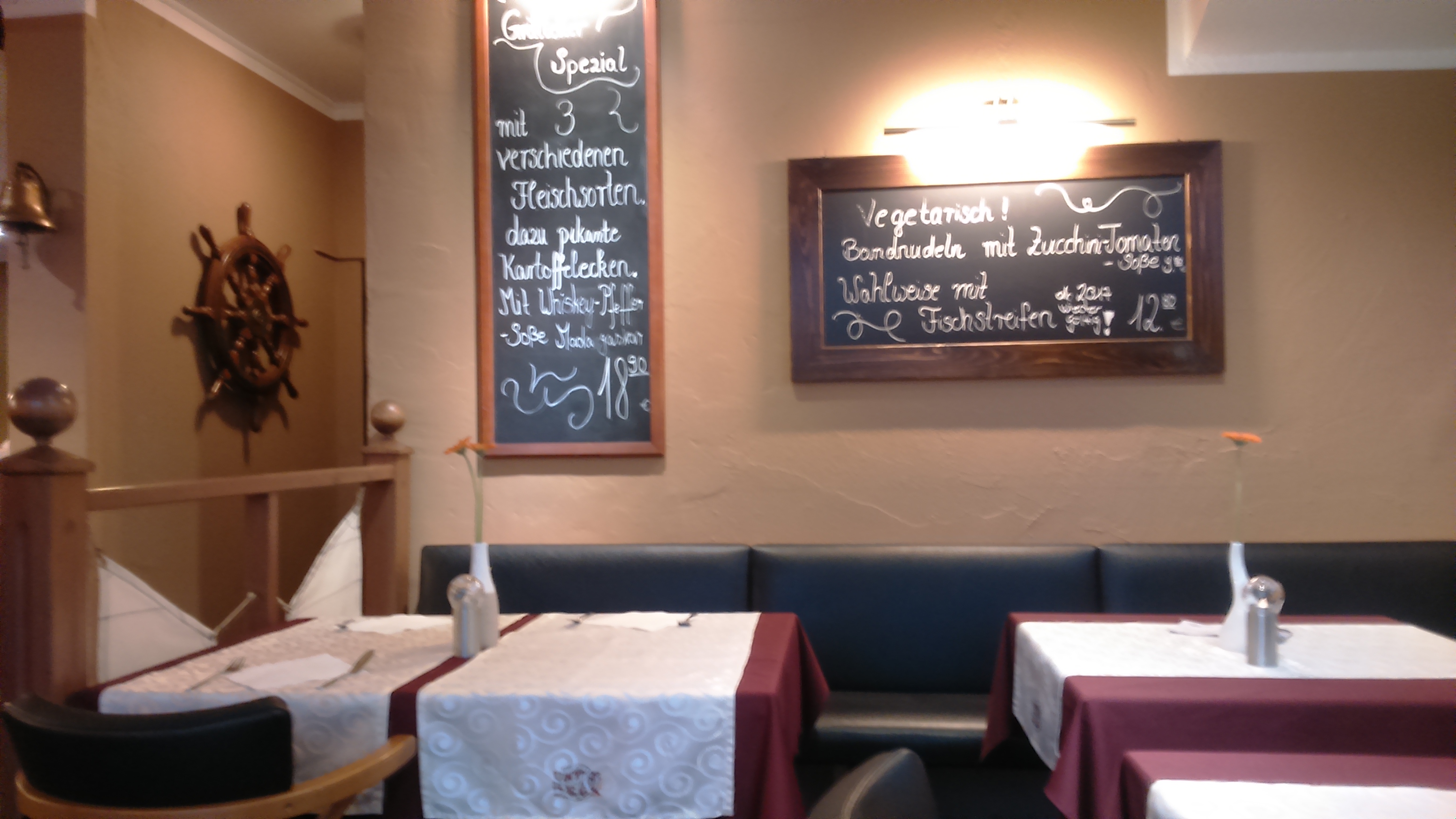 💬 Un très bon restaurant au coeur de Geilenkirchen. Le parking est juste à côté. Autant que je sache, l'entrée n'est pas accessible aux fauteuils roulants. Dès le début, le personnel était attentif, attentionné et sympathique, associé à une agréable dose d'humour. Je décrirais la sélection de plats comme gérable, mais exquise. Viande, poisson, végétarien sous forme de salades. Les prix sont haut de gamme, mais valent le coup car la nourriture est vraiment bonne. Je me sentais à l'aise et j'ai l'intention de revenir.