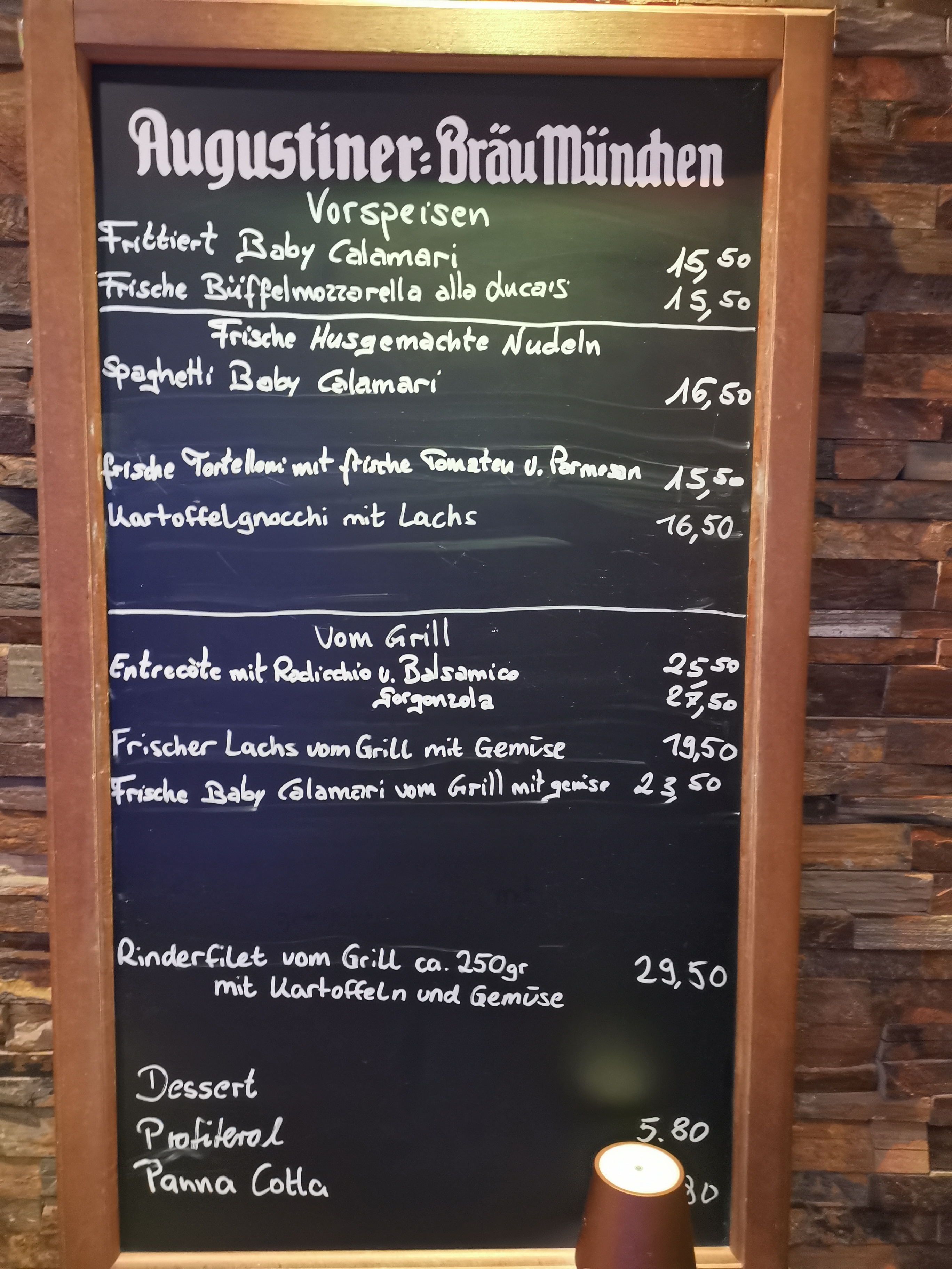 💬 Il y a récemment eu un nouveau chef qui essaie de redonner à la cuisine son ancienne gloire ; le menu hebdomadaire est excellent. Salade Matjes aux pommes de terre sautées et tarte au chocolat au centre liquide.