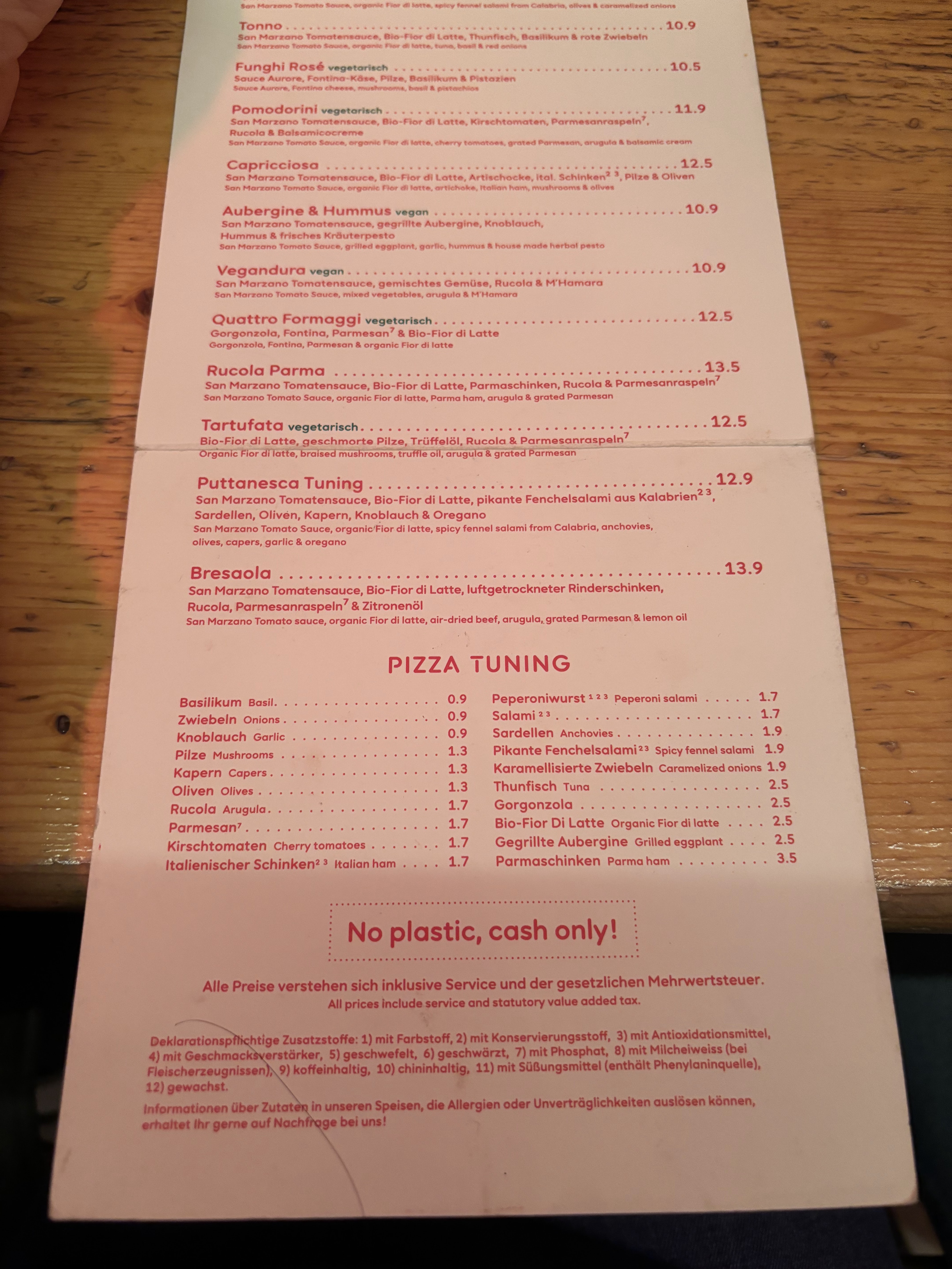 💬 Vous pouvez commander une pizza bon marché ici. Les boissons sont également assez bon marché. Le blé naturellement trouble était très savoureux. Mais depuis le début : J'ai commandé une table pour 2 personnes par téléphone. On nous a ensuite montré une table pour 6 personnes. L'ensemble du restaurant est très bien éclairé. Nous n'avons rien trouvé qui ressemble à une ambiance ou à une lumière atmosphérique. La bougie sur la table n'était pas allumée. Tout est meublé simplement. L'installation était propre et correcte. Le restaurant était presque à moitié plein samedi soir. Les pizzas avaient l'air correctes, mais la première bouchée était un peu décevante. Une pâte farineuse et simple. Des recettes sans goût. Les nombreux morceaux de pepperoni sur la pizza Americana étaient simplement aigres, sans piquant. La pizza Tonno était également assez simple. D'autres critiques mentionnent le terme pizza toute prête. Ce n'est pas déraisonnable. Finalement, il y avait un Marsala sur la maison. C'est pourquoi je ne me suis pas plaint du fait que le projet de loi était erroné. 7€+7,50€+8€ n'est pas égal à 24€ Il y a aussi une page de plats de riz pakistanais au menu, peut-être qu'ils sont meilleurs ? Dans l'ensemble, je ne recommanderais pas le restaurant.