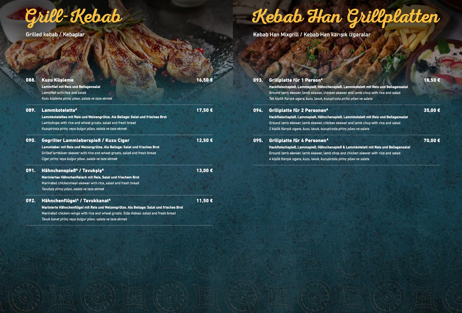 💬 Algül Döner est de retour - le nom Algül est bien connu de tous ceux qui suivent la scène des rôtisseries locales. M. et Mme Algül ont tenu un restaurant de kebab au cours des dernières années et décennies sur l'Asterweg, la Seltersweg et plus récemment sur la Frankfurter Straße. Ils savent donc exactement ce qu'ils font et ont trouvé ici, à Asterweg, l'endroit où ils souhaitent séjourner. Le "fabricant de pâtes" se trouvait ici au numéro 14 et les toilettes tournantes sont en fait toujours les mêmes qu'avant. Sinon, il y a 20 places assises dans des salles récemment rénovées avec de grandes fenêtres et un grand comptoir avec deux rôtissoires derrière. Un grill et un four à pizza sont également inclus ainsi que quatre réfrigérateurs que vous pouvez utiliser vous-même. De nos jours, bien sûr, le menu est présenté avec des flammes vacillantes en permanence sur les écrans, à cet égard nous évoluons avec notre temps. Les plats ne diffèrent pas des autres kebabs du triangle kebab, bien au contraire. Il y en a moins et il n’existe pas (encore) de kebab végétalien au seitan ici. J'ai mangé mon plat préféré, des falafels en pain plat, les ingrédients étaient frais et délicieux. Reste à savoir si le triangle des kebabs de Giessen a réellement besoin du septième kebab dans un rayon de 400 mètres. En tout cas, je souhaite le meilleur à ce couple extrêmement charmant et je suis sûr que ce ne sera pas la dernière fois que j'y vais.
