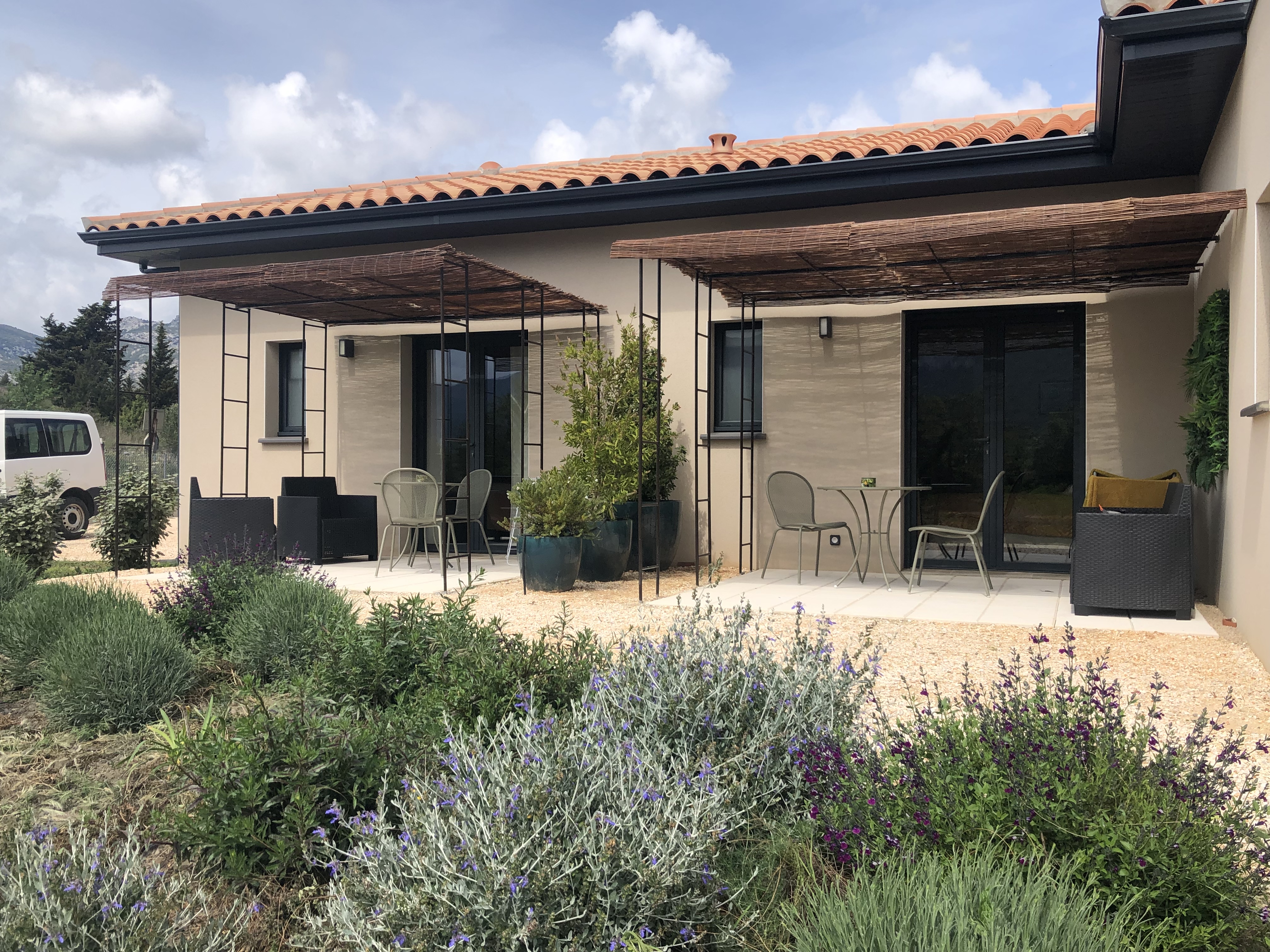 La chambre d’hôtes la plus parfaite. Le bâtiment est flambant neuf, extrêmement confortable et a été joliment décoré par les hôtes Thierry et Sandy. Le quartier est calme et les chambres ont une belle vue sur les montagnes depuis la terrasse. Thierry et Sandy sont gentils et serviables, servant un délicieux petit-déjeuner et fournissant des recommandations locales allant des activités aux pistes cyclables. Nous avons eu la chance de goûter leurs vins primés et d'entendre l'histoire de la création de Mas Terra. Nous avons passé un séjour parfait et sommes très tristes de partir.