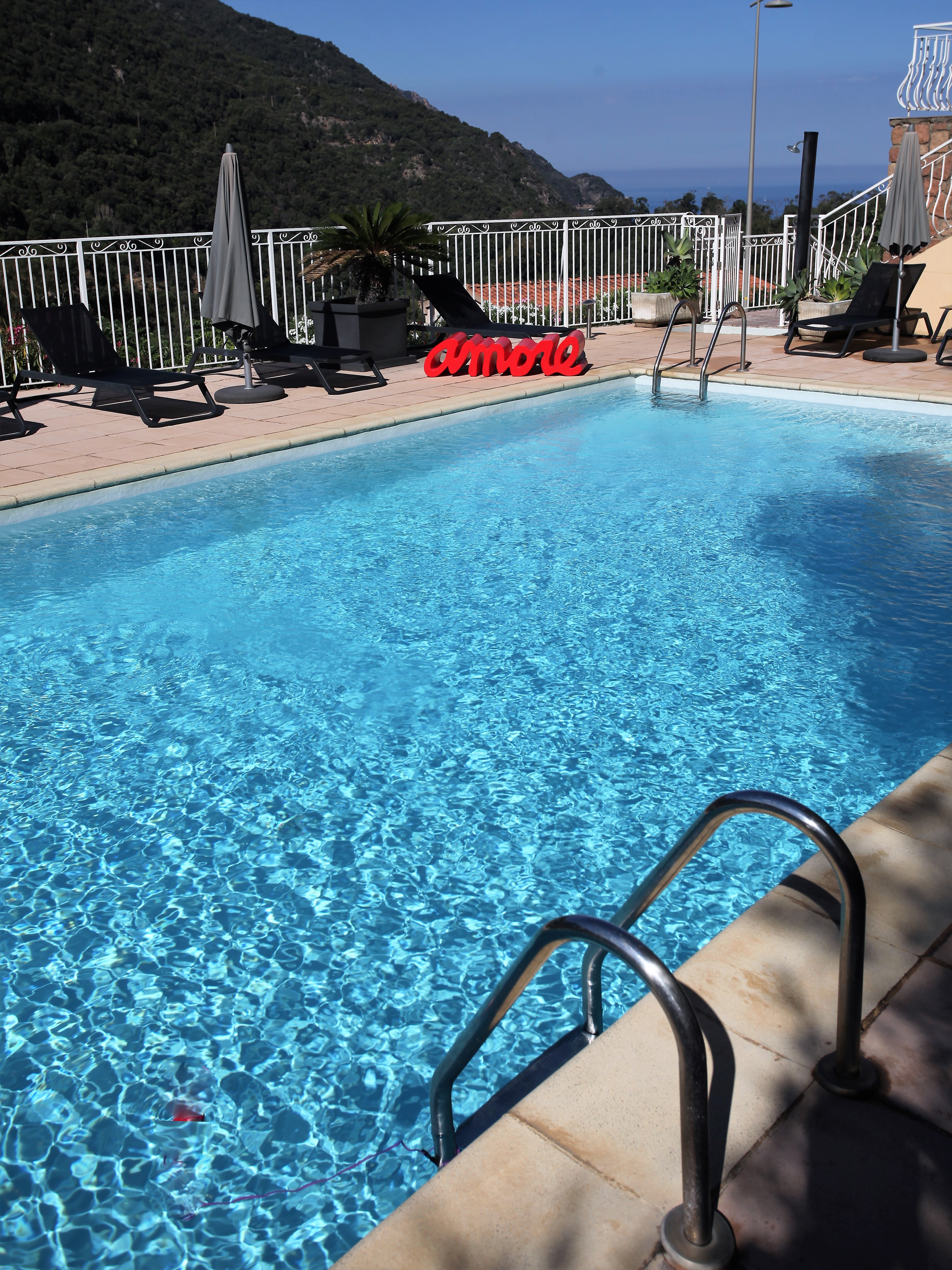 Hôtel confortable avec vues mer et montagnes. Bien situé à 5 minutes en voiture de la marine de Porto. Piscine agréable avec prêt de serviettes. Petit déjeuner en terrasse avec une vue magnifique sur mer et montagnes. Chambre avec une petite loggia bien appréciable.