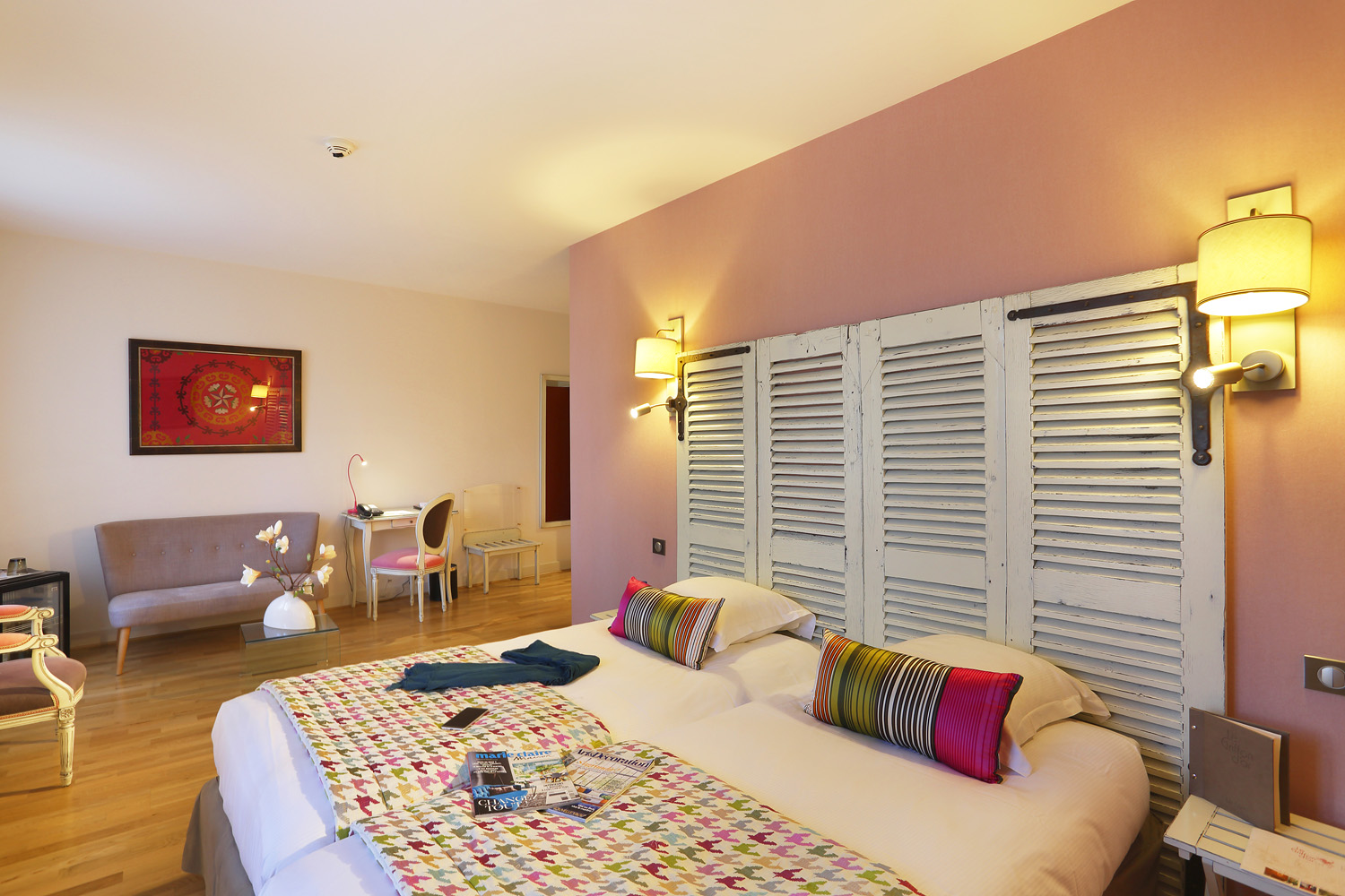 Super emplacement en plein centre. Parking. Bel accueil. Superbe chambre décorée avec goût, ainsi que l'ensemble de l'établissement. Bonne literie. Petit déjeuné de qualité pris sur la terrasse. Petit coin de paradis. Merci à l'équipe