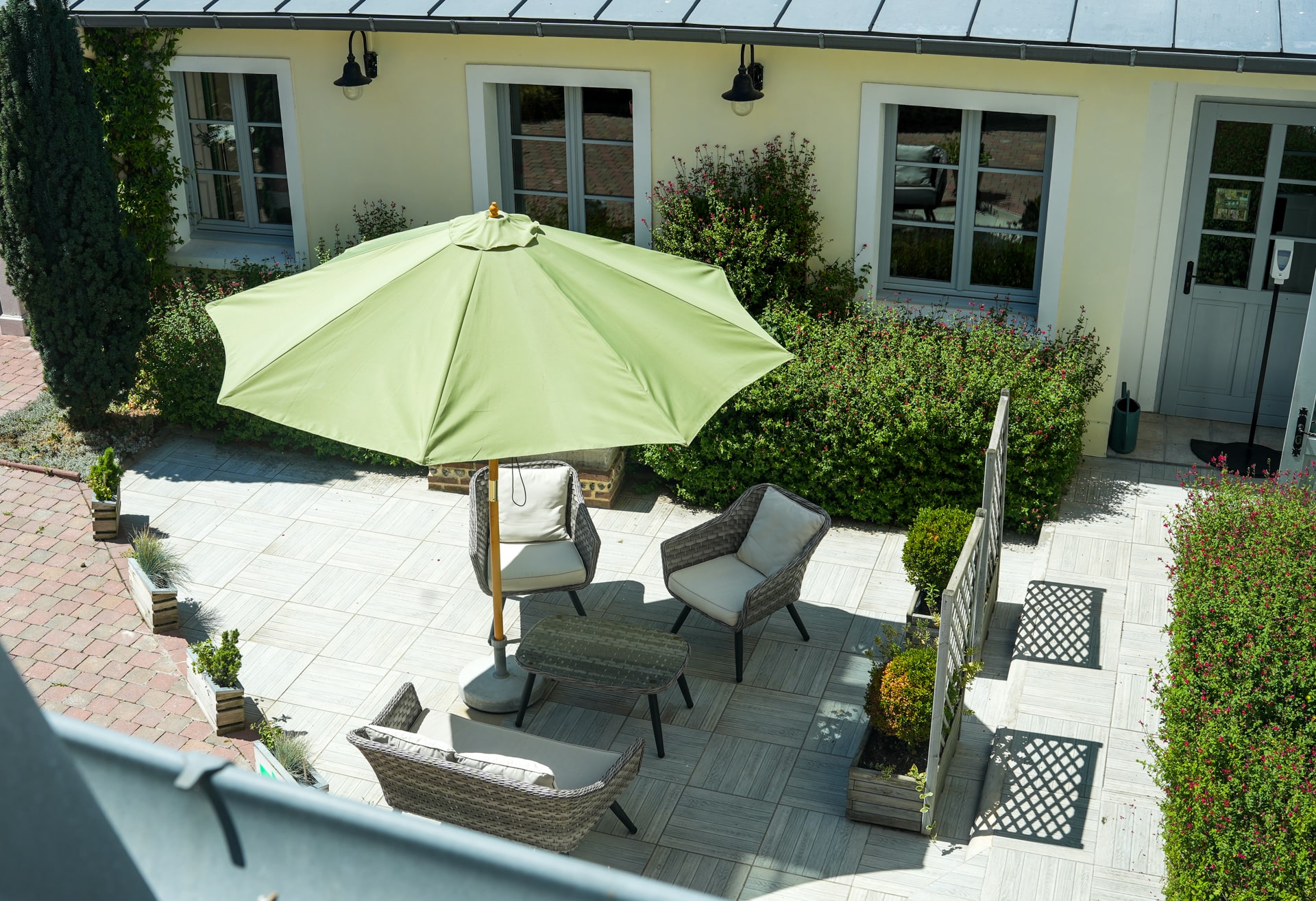 A proximité immédiate d'une place dotée d'une quinzaine de places de parking et au pied de la vieille ville, cet hôtel de charme, avec ascenseur, comprend 18 chambres (pourtant nous disposions de la 19 avec mezzanine au 2e !) . Dont une grande chambre de plain-pied. Pour la détente,un bar et une cheminée et en été, un patio fleuri et plein de soleil. L'accueil est chaleureux et attentif. La clé de chambre est un symbole qui résume tout = un standing rétro et professionnel a accompagné notre séjour que nous avons apprécié. Nous recommandons.