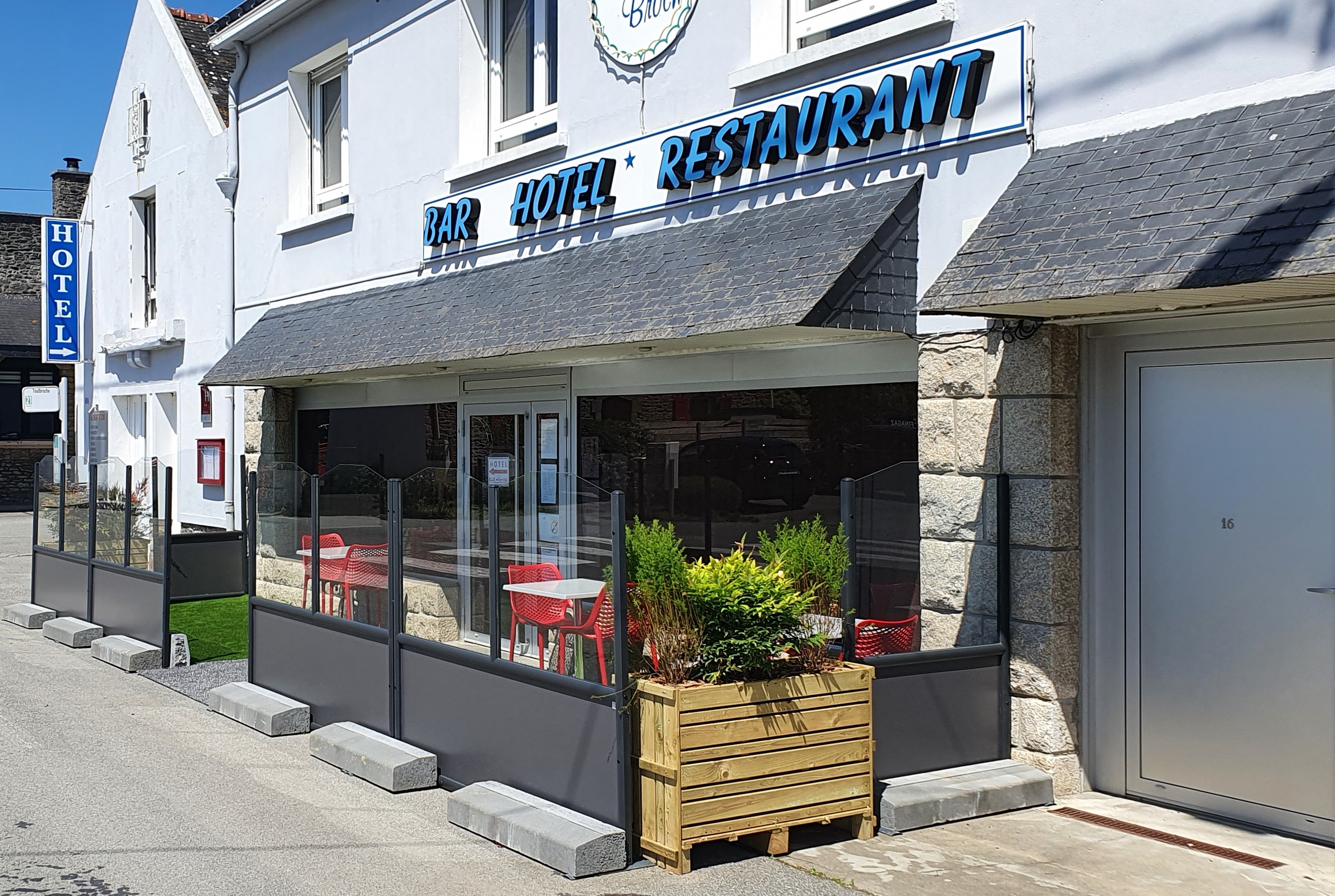 Hôtel très bien situé près de Port Blanc. Chambre propre avec une bonne literie. Personnel sympathique. Le petit plus: un espace sécurisé pour les vélos.