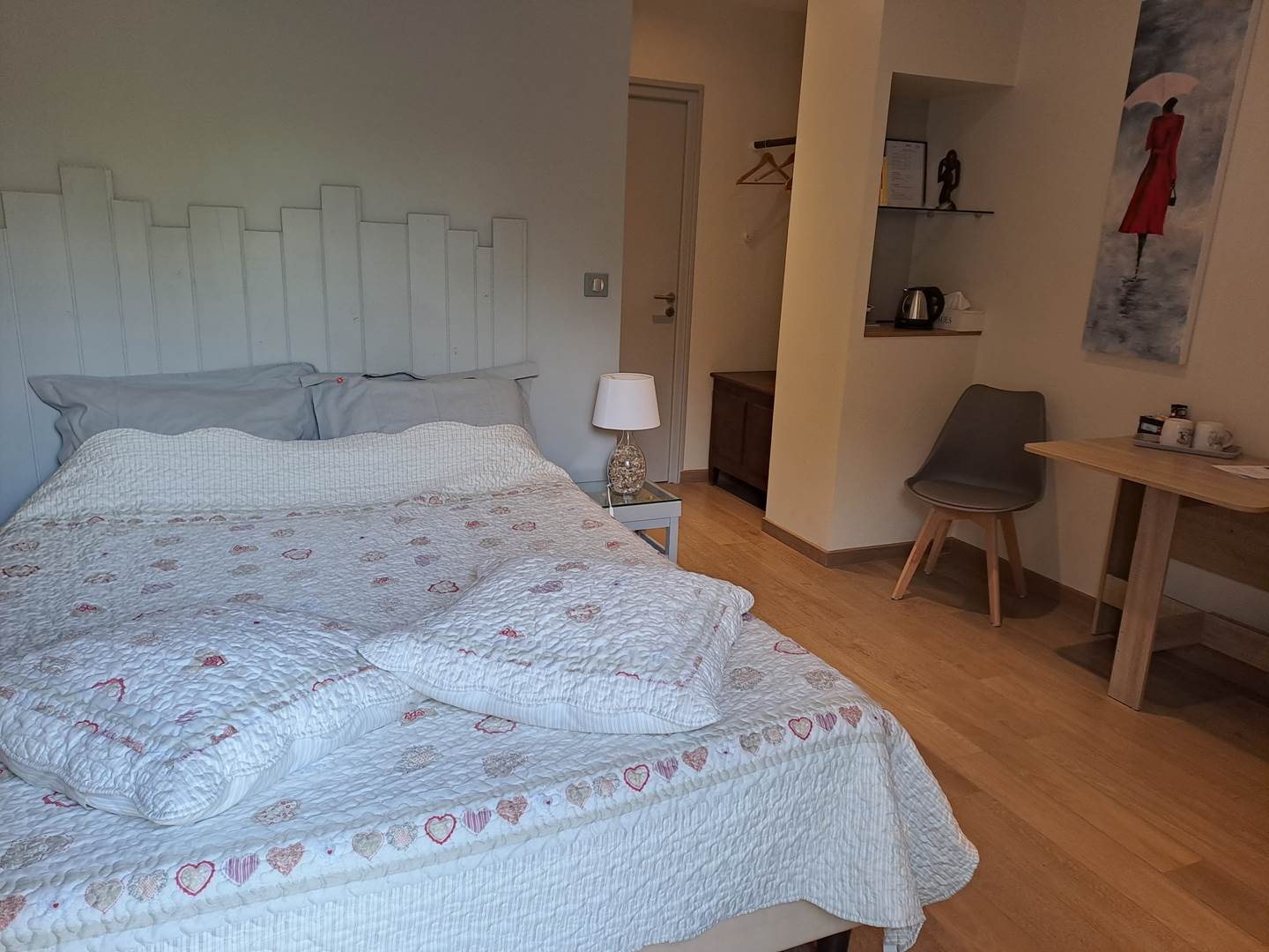 Les propriétaires nous ont accueillis avec bienveillance et sérieux. Les chambres étaient très agréables et très spacieuses. Le petit déjeuner parfait. Rien à redire. Allez-y les yeux fermés.