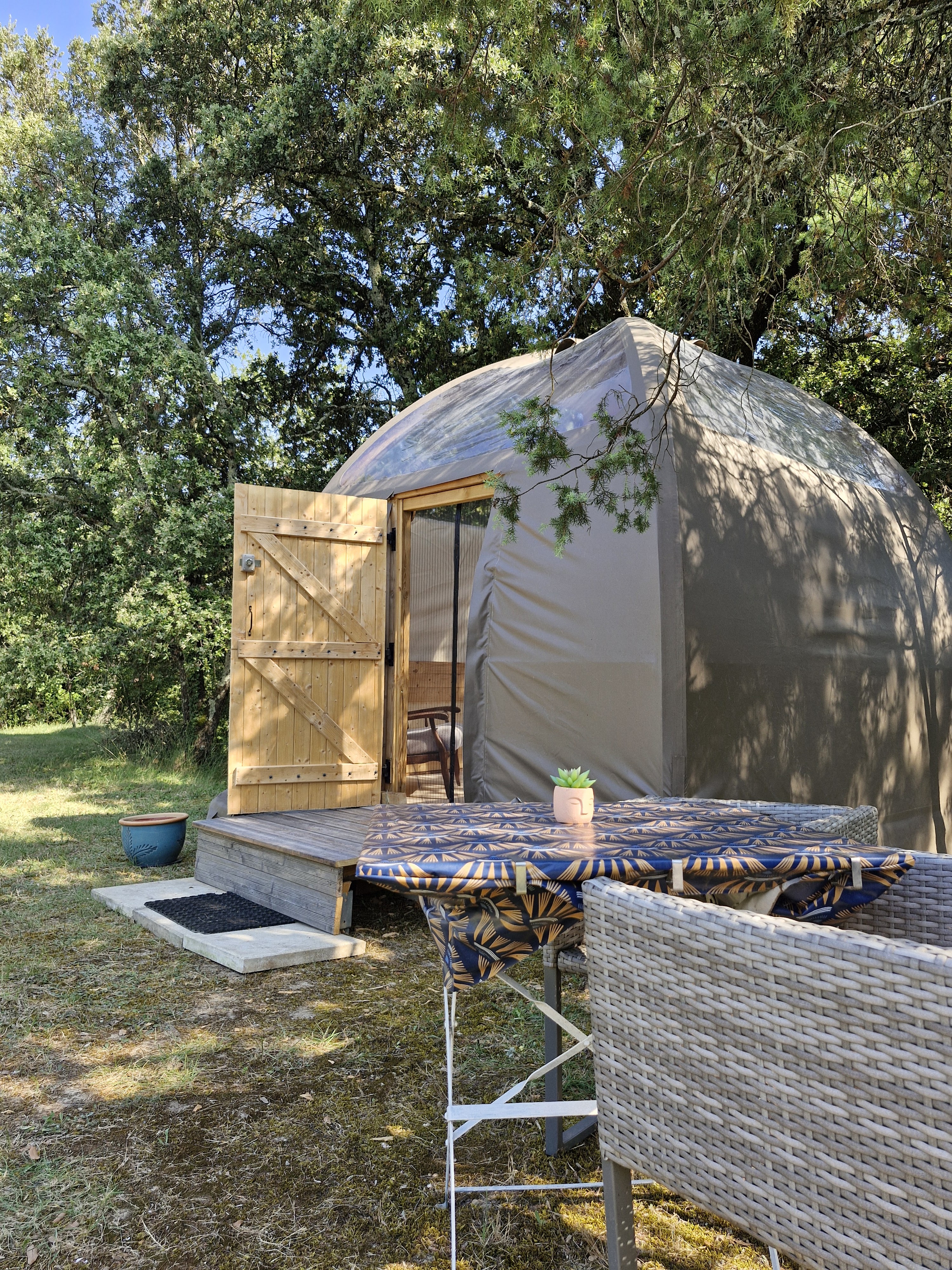 Encore merci pour ce super accueil à Sidonie et Cédric. La dernière portion de route (100m) est abîmée et m’a stressée mais ça valait le coup. Rapport qualité / prix imbattable pour une nuit dans le Dôme. Confortable, cosy, calme et sous les arbres. C’était parfait.