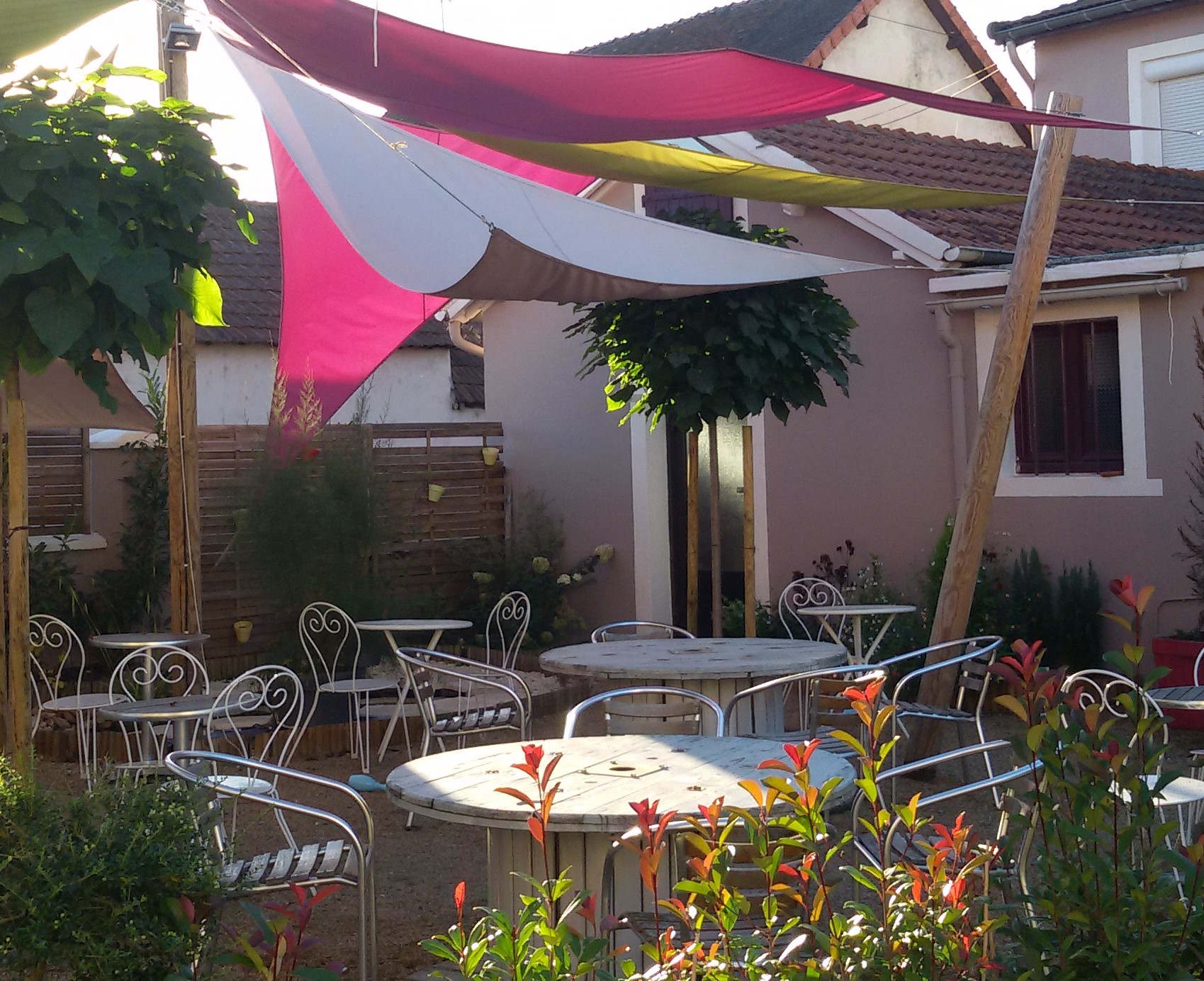 Excessivement cher pour une chambre minuscule, sombre, en sous-sol, humide, au sol très sale et en colocation avec divers insectes. Nous avions réservé une chambre pour 3 nuits à l'hôtel du merle blanc pour aller au Festival à Paray le Monial (515€, 1 chambre pour 4 personnes, 3 nuits, petit déjeuner non compris). Cet hôtel dispose d'un joli espace extérieur sous les arbres avec une petite fontaine très agréable. Nous avons été bien accueillis par la gérante sympa, souriante et réactive aux soucis. La chambre, accessible en demi sous-sol, par un escalier étroit, était sombre. La fenêtre, assez haute par rapport au sol, donnait sur le sol du parking extérieur, des buissons cachant les voitures. Nous avons été accueillis par un chat faisant ses besoins juste devant notre fenêtre. Nous sommes tombés sur un weekend assez froid pour un mois de juillet mais la chambre était froide, l'humidité n'arrangant rien. Les lits étaient donc agrémentés, en plus de la couette, d'une deuxième couette mais qui n'avait pas de housse de couette, peut-être suis-je un peu psychorigide mais cela m'a un peu choquée. Les espaces au sol entre les lits et les murs étaient parfaitement *crades*, les saletés naturelles du passage des différents clients précédents ne devaient pas avoir été lavés depuis des mois. Sortir de la douche, marcher dans la chambre, revenir dans la salle de bain et constater que le tapis de bain est déjà noirci des saletés ramenées sous nos pieds. La salle de bain de taille normale mais basse de plafond était somme toute assez bien mais trop peu aérée ou ventilée. La douche était agréable, bien chaude et avec une bonne pression. Pour le reste, la chambre manquait de modernité et les équipements ont subi les affres du temps. Je n'ai pas encore compris comment étaient installés les vas et viens des interrupteurs entre l'entrée de la chambre et les interrupteurs situés à la tête des lits et quand je dit "à la tête des lits" je sousentends des interrupteurs qui s'allument ou s'éteingnes avec notre tête que l'on pose un peu trop vite sur l'oreiller. Par suite, le lendemain, nous avons pris un petit déjeuner à 15€/personne à l'hôtel. Buffet avec viennoiseries (picard surgelé je te reconnais bien) et pains (entre autres, biscottes encore dans leur emballage), pancakes (très bons, je recommande), demi-crêpes (oui-oui, demi), cookies qui semblaient faits maison (très bons), céréales, yaourts (on m'avait dit fromage blanc, je m'attendais à plus que du perle de lait), jambon, fromage (tranches d'emmental qui avaient sué), salade de fruits (vraiment très triste qu'il n'y ait pas eu de fruits autre qu'en salade), confiture maison (beaucoup de parfums, très bonnes, point positif), pain (qui était bon), jus d'orange industriel (pas d'autre choix), oeufs (QU'IL FALLAIT CUIRE SOI-MÊME dans une casserolle d'eau à disposition donc seulement pour des œufs mollet ou à la coque, pas d'oeuf bruillé ou sur le plat...), et en boissons café servit à table, eau chaude avec choix de thé au self et chocolat chaud (lait chaud servi à table et sachets de Nesquik à disposition, chocolat chaud à faire soi même). En conclusion, même si la chambre avait été gratuite, je n'aurais pas choisi de dormir là en connaissance de cause. Le prix est parfaitement excessif pour les prestations obtenues. Peut-être que le prix était augmenté en raison du festival à ce moment mais cela ne justifie pas de tel prix. Pour le petit déjeuné, je n'aurais pas mis plus de 7€ pour ce que nous avons eu. Il aurait pu être proposé moins de choix mais avec plus de qualité. Par ailleurs, la présence des chats ne me dérange pas sauf dans des espaces où mange une clientèle.