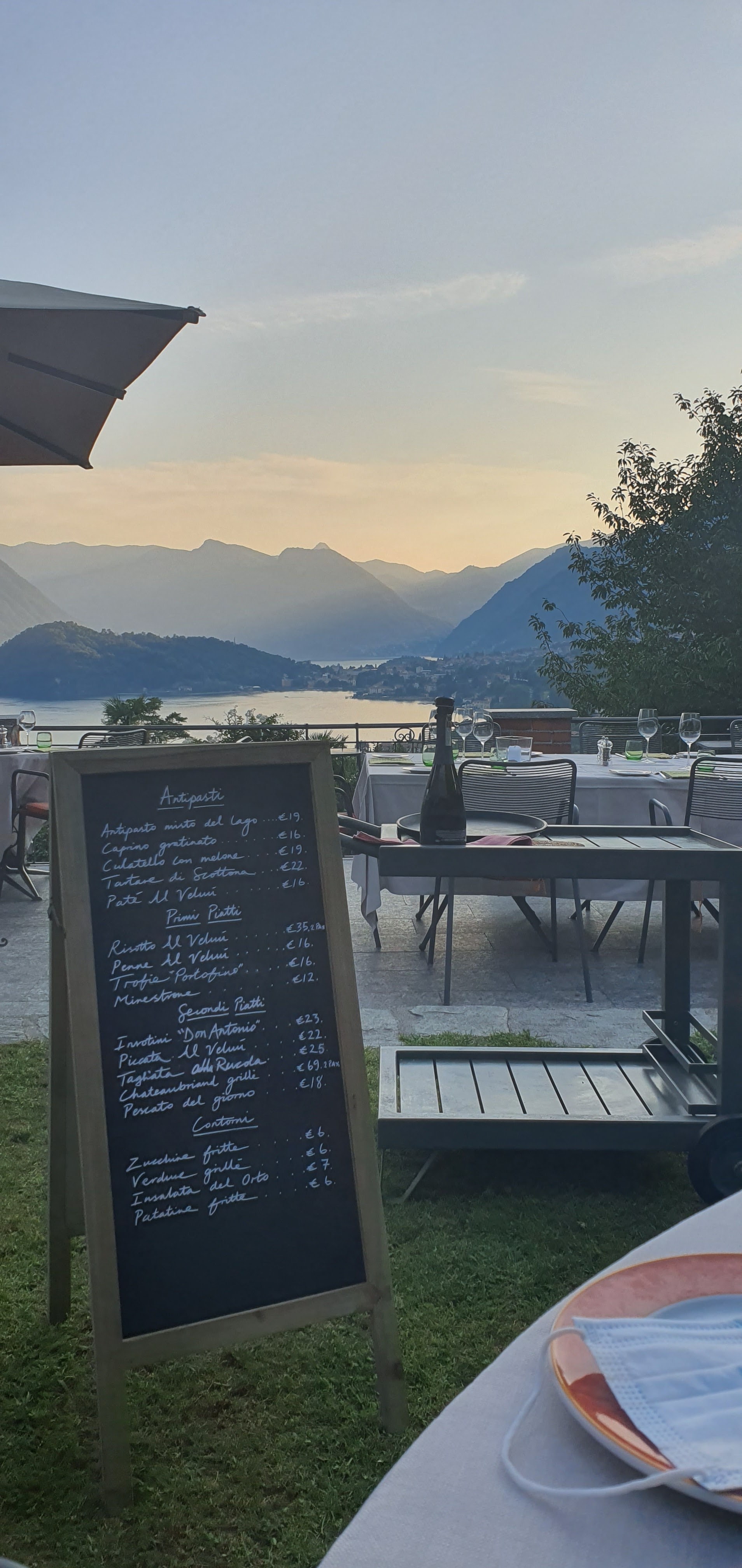 💬 Belle découverte. Plats frais et goûteux (dommage assiettes froides) service rapide et professionnel. Prix relativement corrects mais reste plus cher que dans d'autres parties du lac (Lenno par exemple)