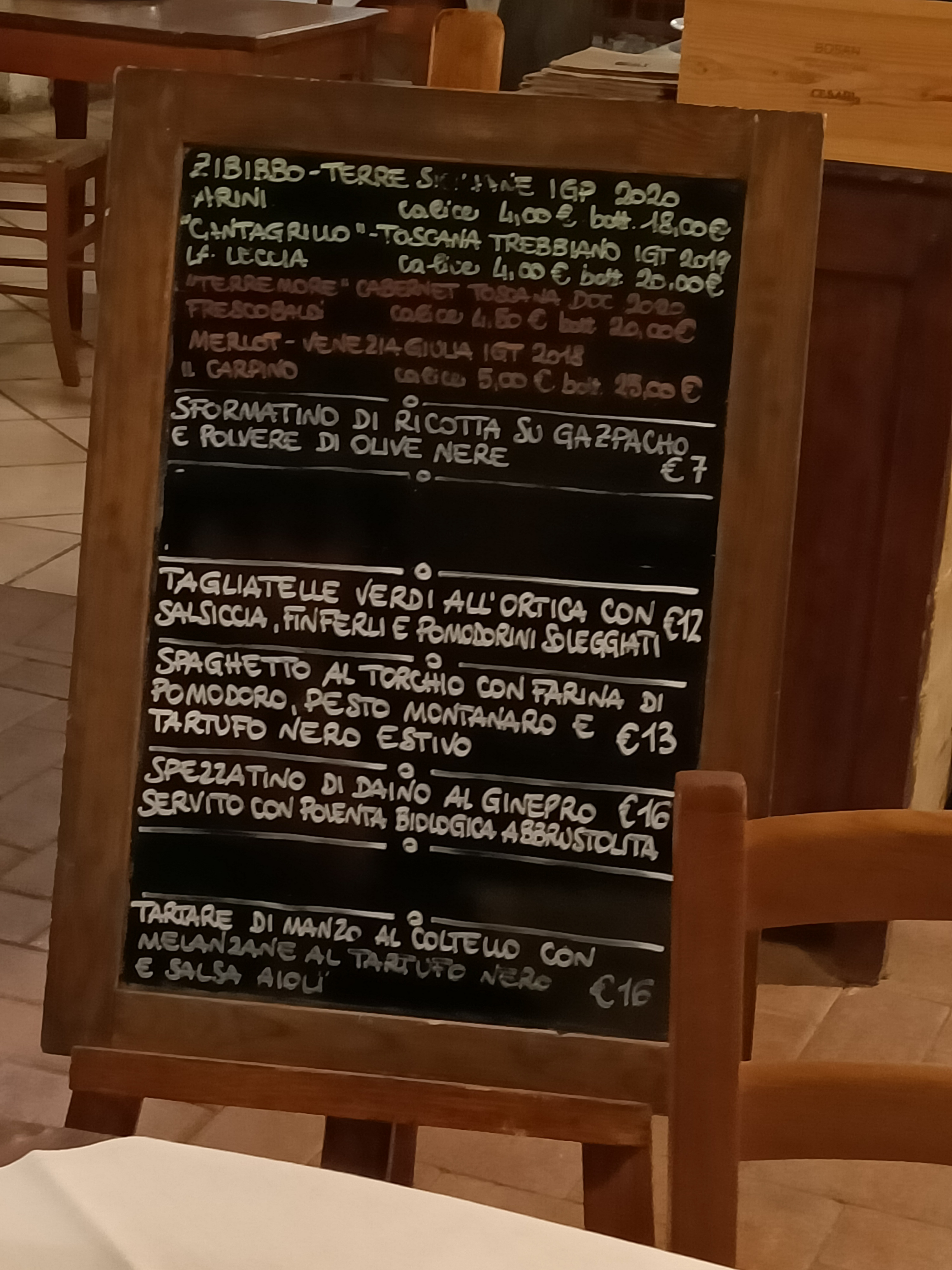💬 Nous avons découvert cette petite Osteria par pur hasard, cachée à l'intérieur du Centre Social Zolino, où, le mardi soir, on danse sur diverses musiques de DJ. La petite salle était pratiquement pleine. Une trentaine de places assises voire un peu plus. Ambiance simple, typique d'une taverne, mais le gigot de mouton et le lapin, accompagnés de frites, étaient vraiment savoureux et tendres. Les crostini et la pizza frite étaient bonnes, et auraient pu être incroyablement croustillantes avec deux minutes de cuisson supplémentaires. Nous avons opté pour un vin rouge en vrac correct. Deux cafés pour conclure un bon et copieux repas. Coût total 45 €.