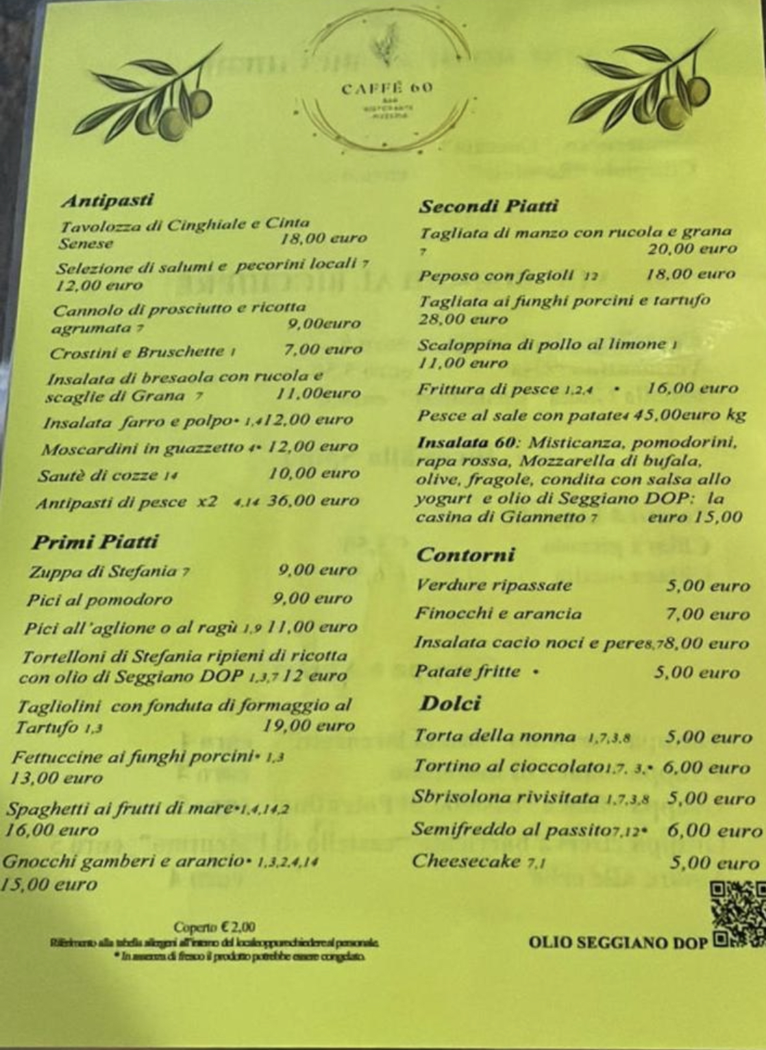 💬 Quand on voyage en compagnie d'une personne coeliaque, d'une végétarienne, d'une intolérante au lactose, d'une diabétique, ce n'est pas toujours aisé de trouver un endroit où chaque personne pourra trouver de quoi se substanter. Cette osteria située dans un village très très touristique propose une cuisine très correcte à des prix non abusifs, avec des options sans gluten (risotto et plat de viandes), des plats végétariens en entrée comme en plat, avec des bruschetta, des pizzas et des soupes, des pâtes. Il y a une explications sur les allergènes dans le menu sous tous les plats proposés. Les serveurs sont vraiment sympas et le restaurant est situé un peu loin de la foule ce qui est vraiment un plus. Les antipastis étaient très copieux, la ribollita soupe avec des légumes et de pain qui a bouilli délicieuse. Le plat de lasagnes était vraiment généreux, la pizza avec de la mozarella bonne et moelleuse et le cochon de lait avec les pommes de terre au four parfait pour la personne intolérante au gluten. Sur les pâtes aux truffes, il y avait une bonne rasade de champignons. Quant au prix du service, il a été de moitié prix pour l'enfant. Vraiment nous n'avons pas regretté de manger dans ce restaurant.