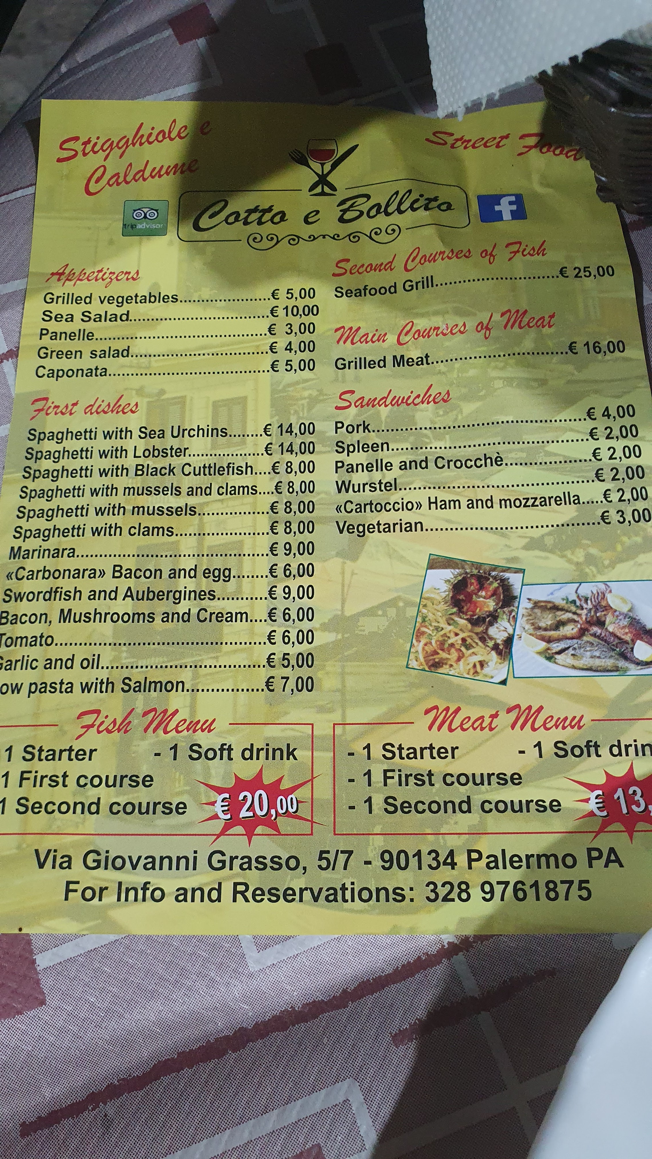 💬 Deux personnes qui n'ont pas de gros appétit ont commandé quatre plats (et un pot de chou-fleur sec) et étaient tout simplement rassasiées. Il est écrit que la portion est grande, mais si vous regardez les côtes de porc salées et poivrées à 12 euros (pas les 8 euros du menu, le patron a dit que le prix a augmenté), je n'en ai pris qu'un morceau et j'ai pris cette photo. il n'y a pas de viande et c'est essentiellement uniquement des os. Le canard à l'huile de sésame est également plus cher que le menu, mais c'est un demi-canard après tout. Le goût est bon, le repas coûte 39 euros pour deux personnes sans boissons, c'est le repas le plus cher que j'ai mangé depuis mon arrivée en Sicile.