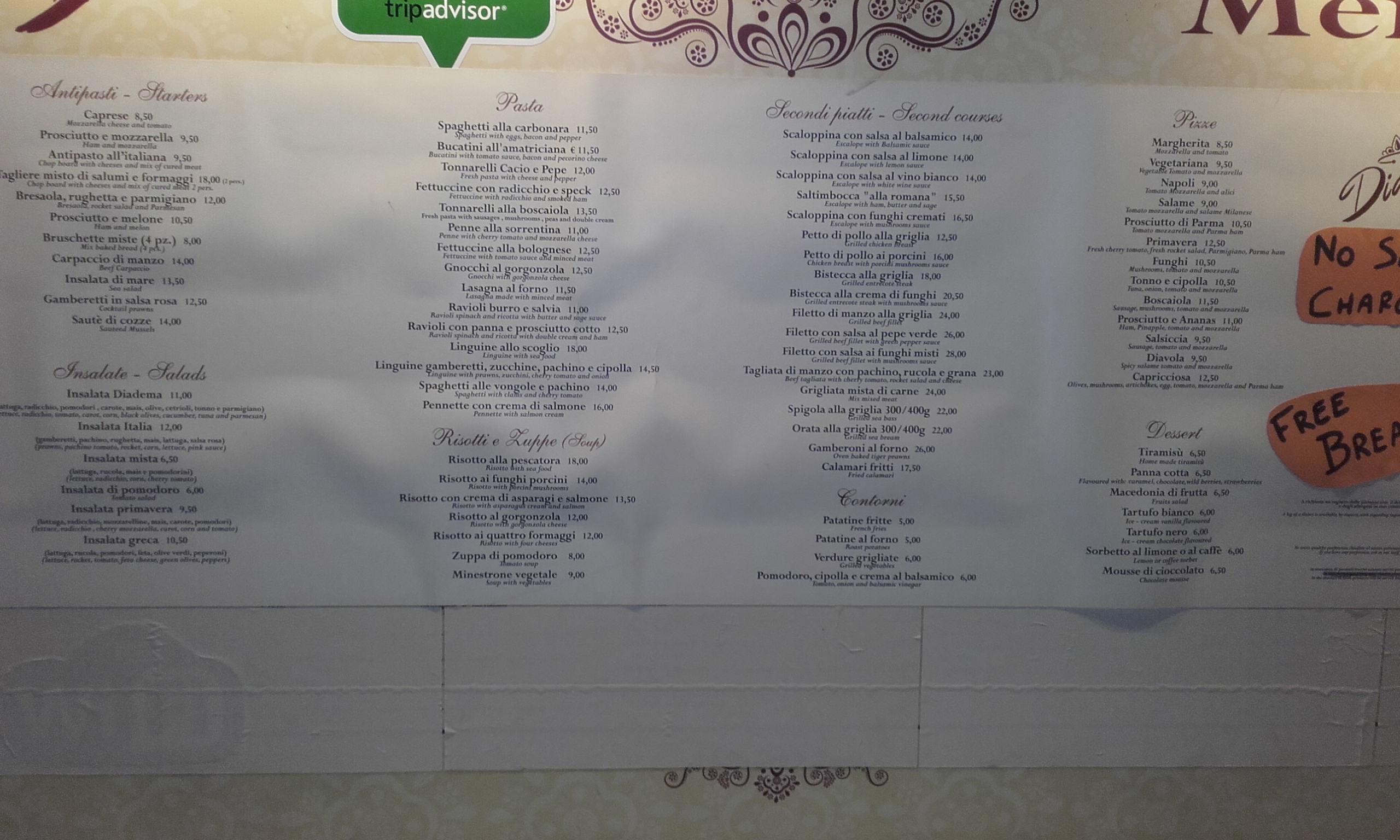 💬 J'ai adoré toute la nourriture. Le petit pesce, les pâtes (pas de photos). Et la viande était la meilleure. C'est un endroit où vont les locaux (au moins ils parlaient tous italien). J'y retournerais certainement.