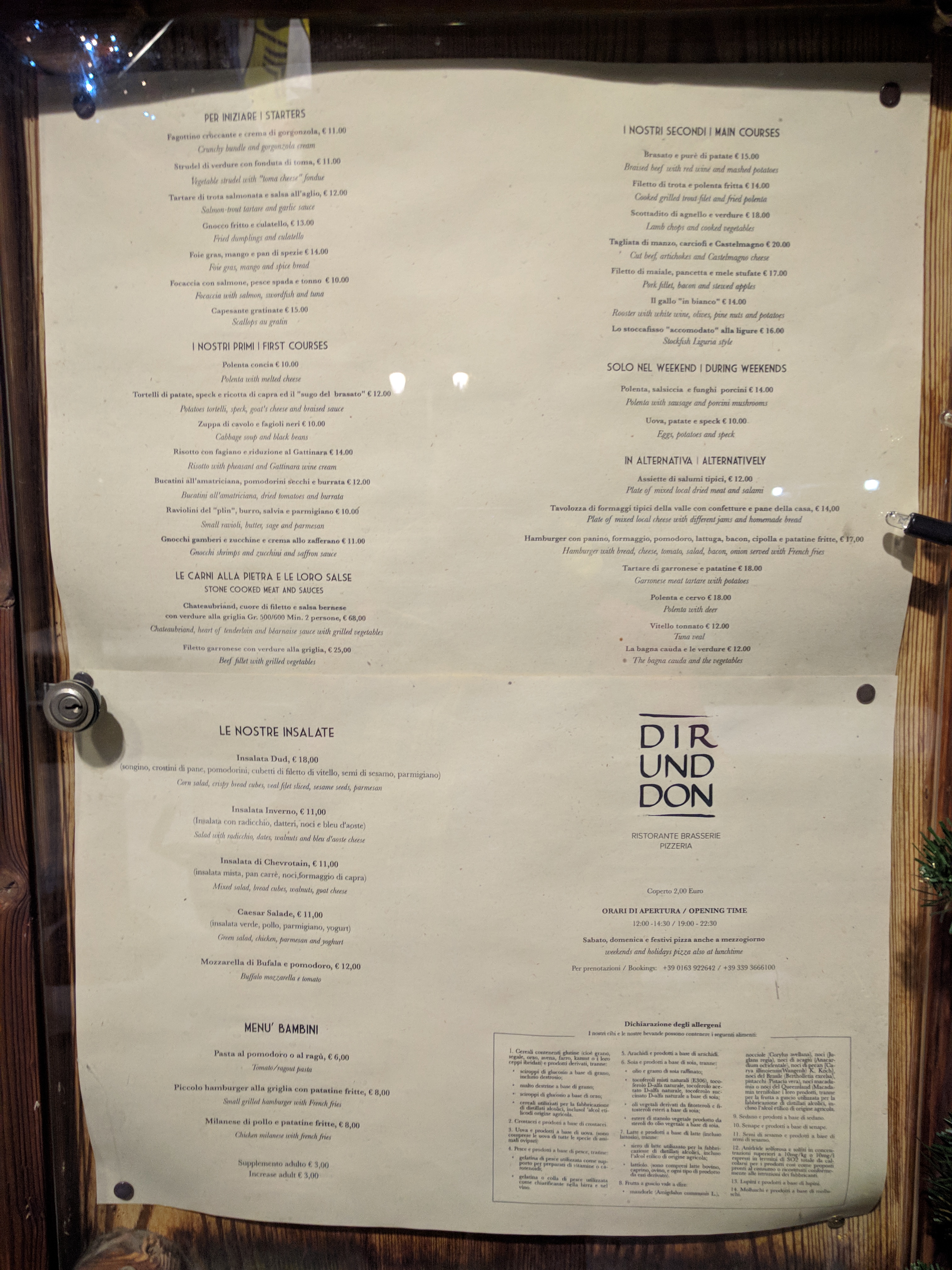 💬 En partant du menu, nous pouvons dire qu'il est très pauvre en plats et qu'il manque de nombreux plats simples, par ex. frites. Les prix sont moyens pour la région, mais élevés pour la qualité de la nourriture. Les boissons étaient servies chaudes. Par contre les miacce (non inclus dans le menu) qui sont la spécialité de la région sont servis avec de la pâte chaude, mais les ingrédients sont froids, de plus les miacce ont peu de saveurs, parmi lesquelles celles des miacce classiques (salami, speck) ne le sont pas. présent. La nourriture en général n'est pas bonne. Cependant, en parlant de lieu, c'est sympa mais il y a constamment la présence de musique forte. La proximité des pistes de ski pour enfants joue en faveur du restaurant. En général, l'endroit n'est pas recommandé.
