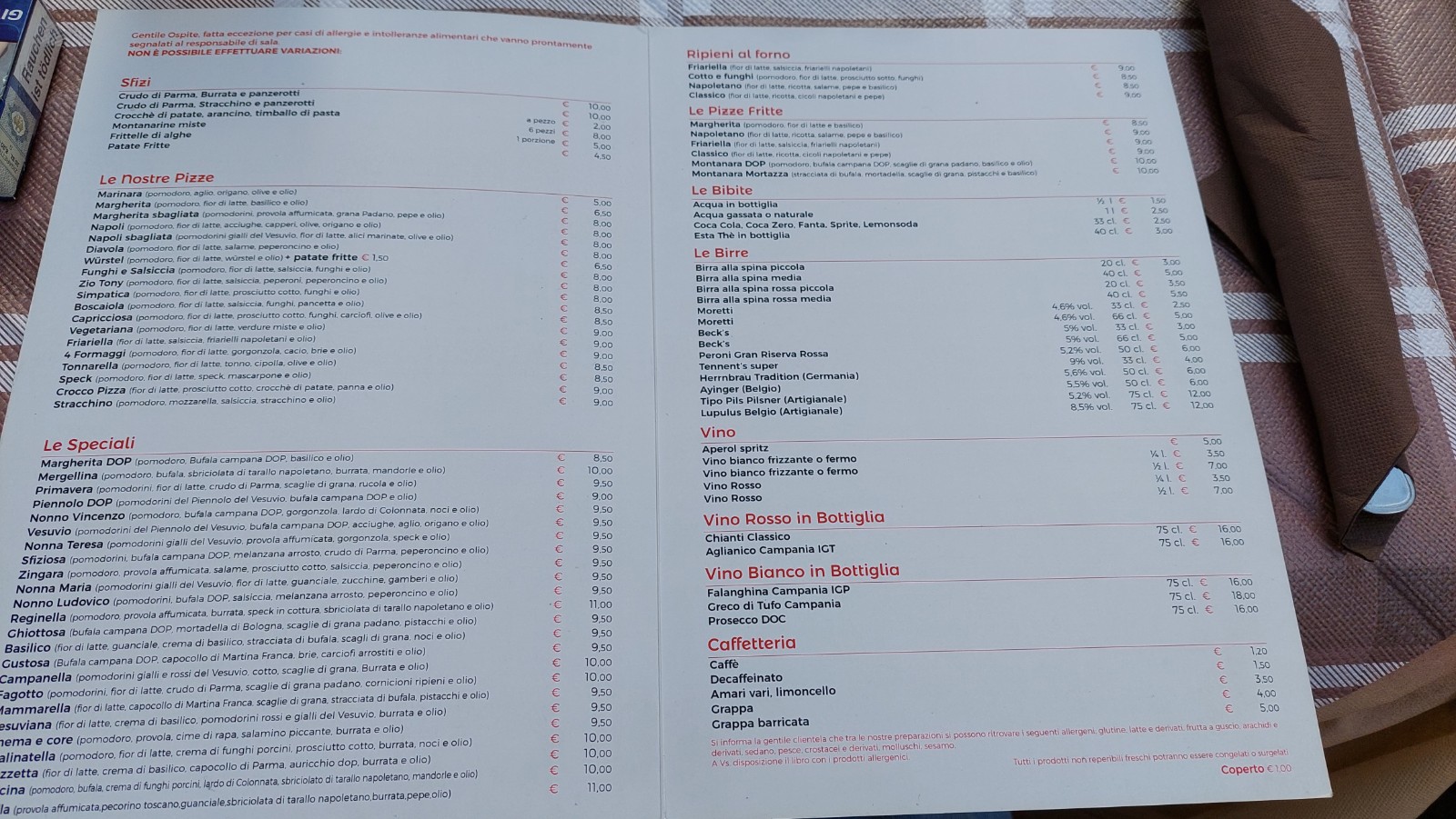 💬 Un choix de pizza impressionnant, il faut 15min pour tout lire. Sinon les pizzas sont très bonnes. Quelques autres plats disponibles (pattes et viandes).