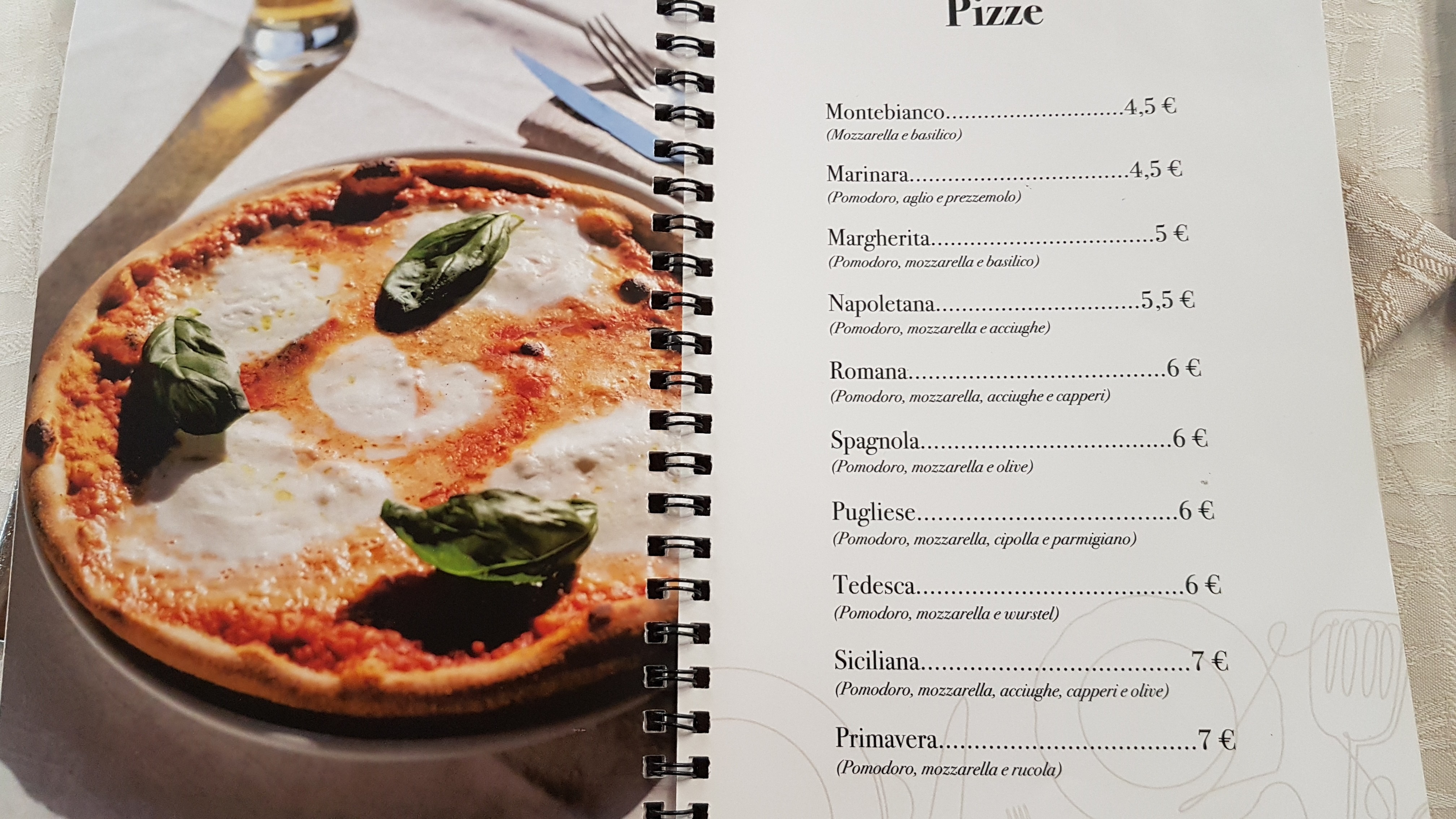 💬 Pizza moyenne, base fine et bord pas large. Possibilité également d'avoir une roue familiale. Restaurant équipé de radio et vivier. Margherita environ 5 euros. Calzone à pizza et Nutella.