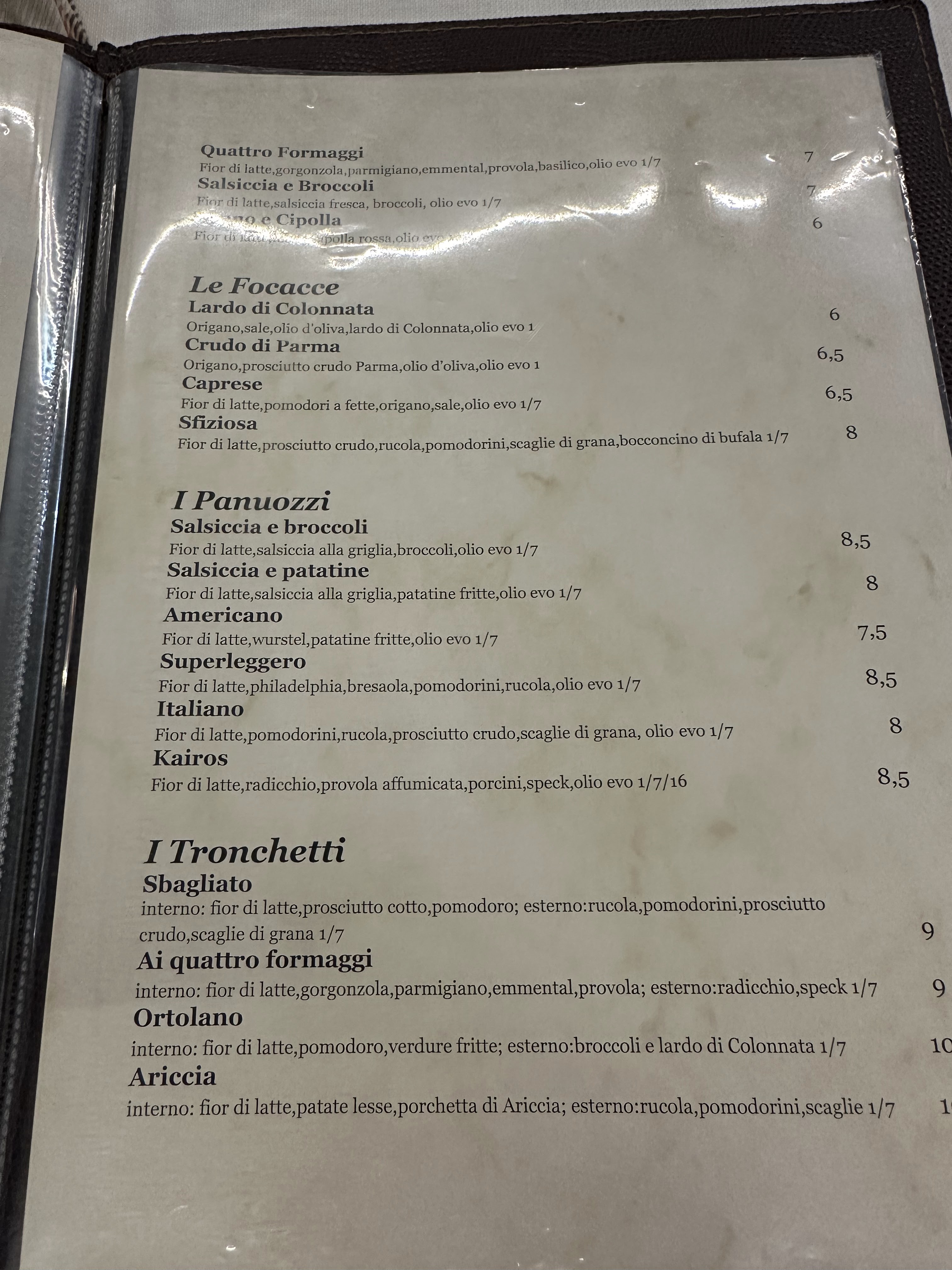 💬 Top! Serveurs hyper gentils, qui parlent un peu français, ambiance amicale entre les clients. On sentait que les gens étaient tous satisfaits de leur repas. Nous, nous avons commandé 2 pizzas aux tomates fraîches, avec de la roquette, du Stracchino et de la bresaola pour mon copain. Très bon! Accompagnées d’un vin blanc pétillant de la casa, pas mauvais pour du vin au verre. Nous avons fini par 1 café, 1 limoncello et 2 desserts, très bons aussi. Et la note fut douce : 49€ pour 2. En plus, nous avons pu amener notre petite chienne!