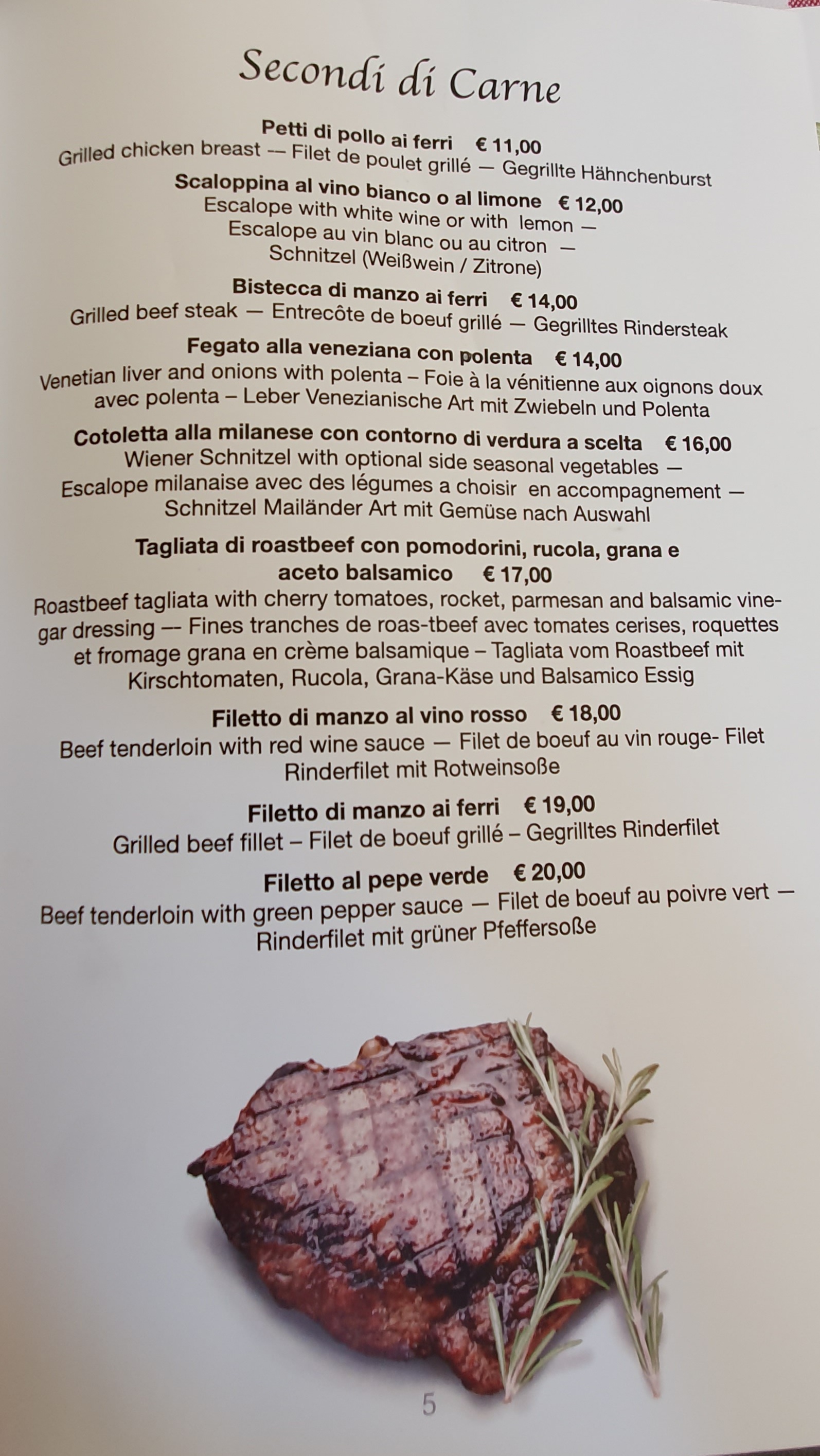 💬 Grand menu principalement axé sur la viande. Des articles comme l'agneau et le porc ainsi que le bœuf. Carte de pizza petite mais raisonnable. La maison Valopicella était plutôt bonne. La pizza est arrivée très rapidement, ce qui signifie que la croûte était gelée. Mais c'était quand même une bonne pizza. La croûte était plus épaisse que la plupart, la sauce avait un goût frais, il y avait beaucoup de fromage et de salami piquant. Globalement, l'une des meilleures pizzas que j'ai eues à Venise. Le service était rapide et sympathique et les prix étaient corrects pour l'emplacement.