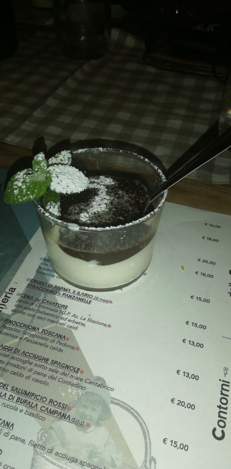 💬 Parfait Nourriture soignée et dessert impeccable. Personnel très agréable et très souriant. Bravo. Bruschetta délicieuses et digne d'Italie. Merci