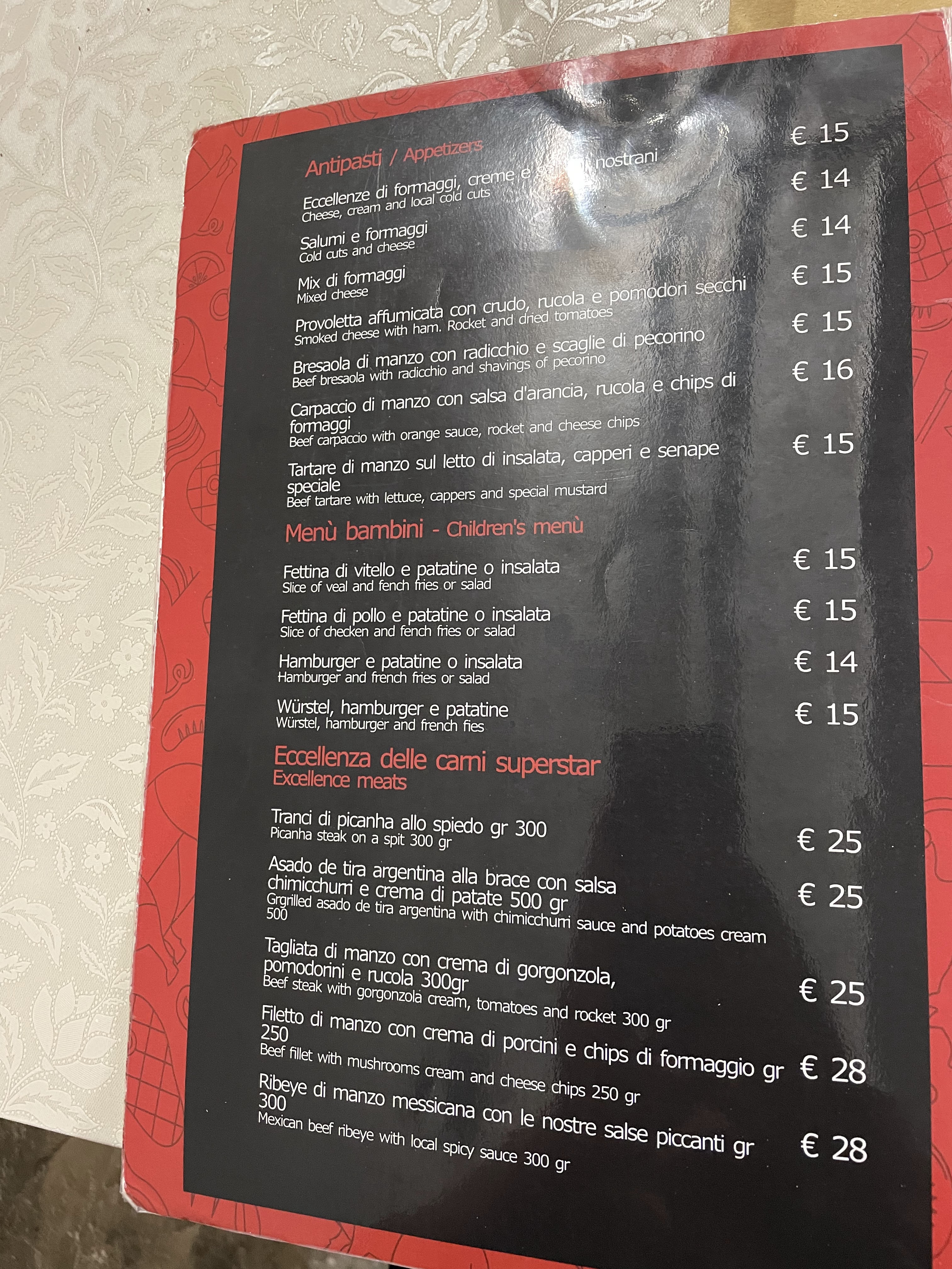 💬 Viande très bien cuite, excellent vin de la maison.