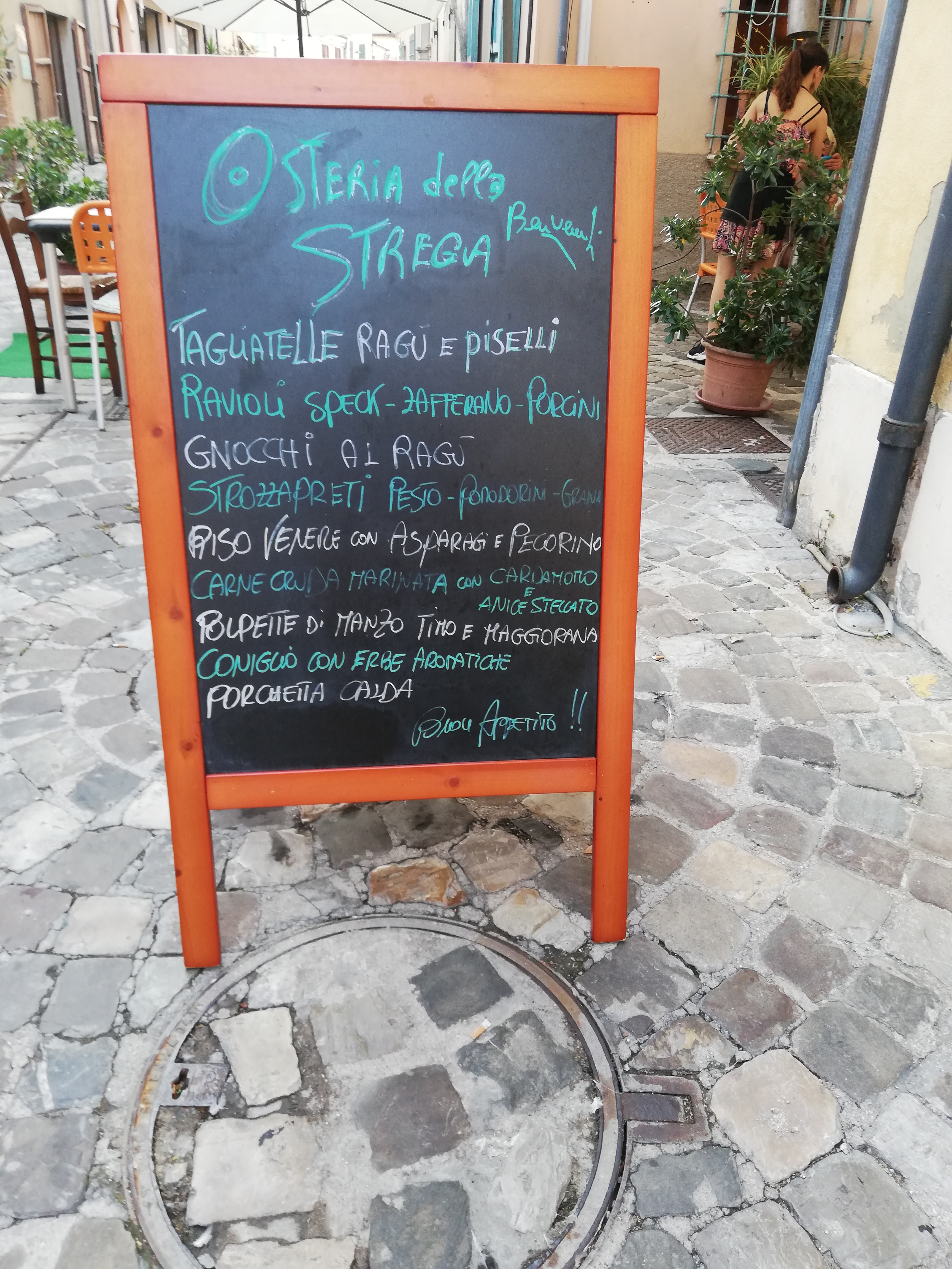 💬 Pas un endroit facile à trouver au milieu des collines. La première impression n'a pas été très positive, car l'endroit est très grand, mais malheureusement c'était aussi un peu décevant, à l'intérieur de ce grand endroit il n'y avait que 3 autres clients, ce qui m'a fait penser au pire. Par contre je dois dire que le barbecue a été une vraie surprise, la viande était très bonne et très bien cuite. Il dispose d'une terrasse extérieure donnant sur les collines et un terrain de football. Les propriétaires sont deux personnes vraiment splendides, des gens typiques de la région des Marches. Prix sur la norme.