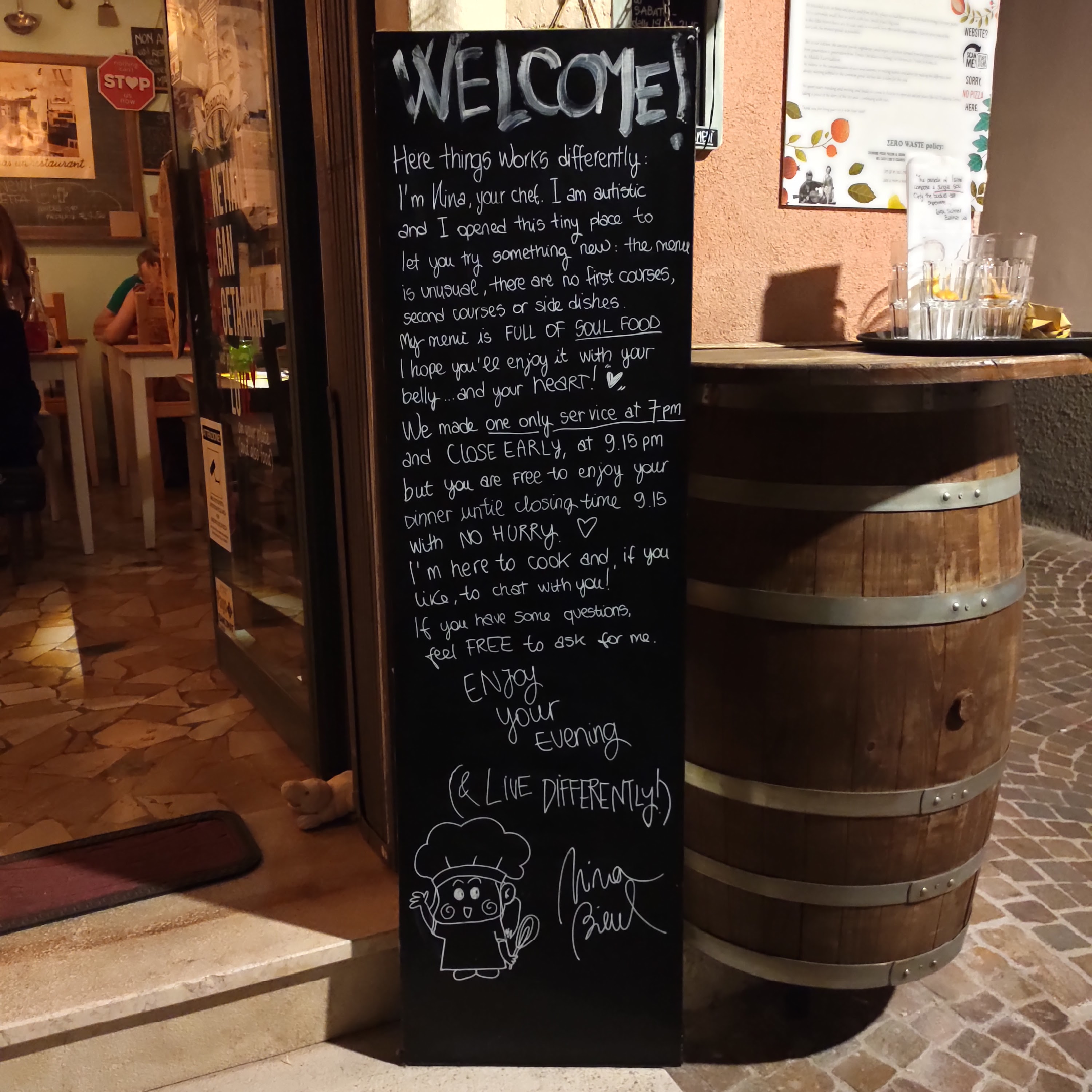 💬 Accueil par celui qui semble être le boss, "uniquement des pizzas car le resto est rempli" nous lance t'il d'un air dédaigneux... Et bien même tes pizzas sont insipides mon gars, je trouve beaucoup mieux en Belgique, n'est on pas au pays des pizzas ? Passez votre chemin, c'est un truc à touriste, idem pour la pizzeria plus haut... Berk