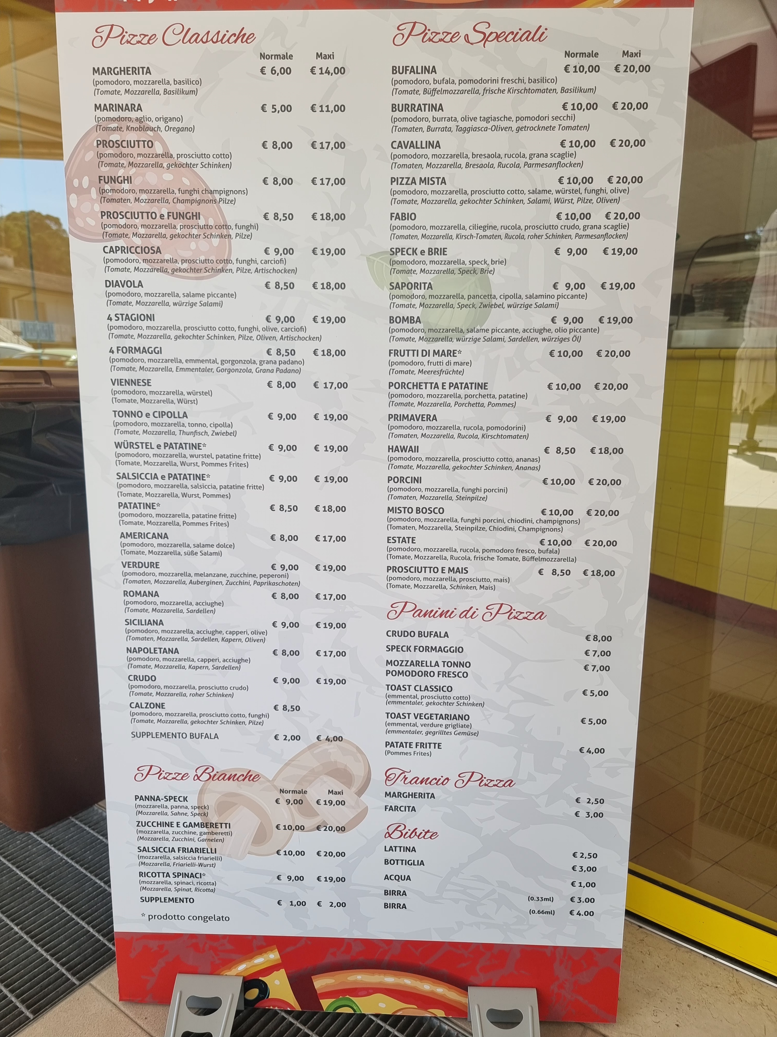 💬 Endroit propre, personnel sympathique et serviable. Prix normaux. J'étais content de consommer une farinata farcina mais on m'a dit qu'elles n'étaient pas disponibles : je recommande de mettre à jour le menu en fonction de ce qui est réellement disponible.