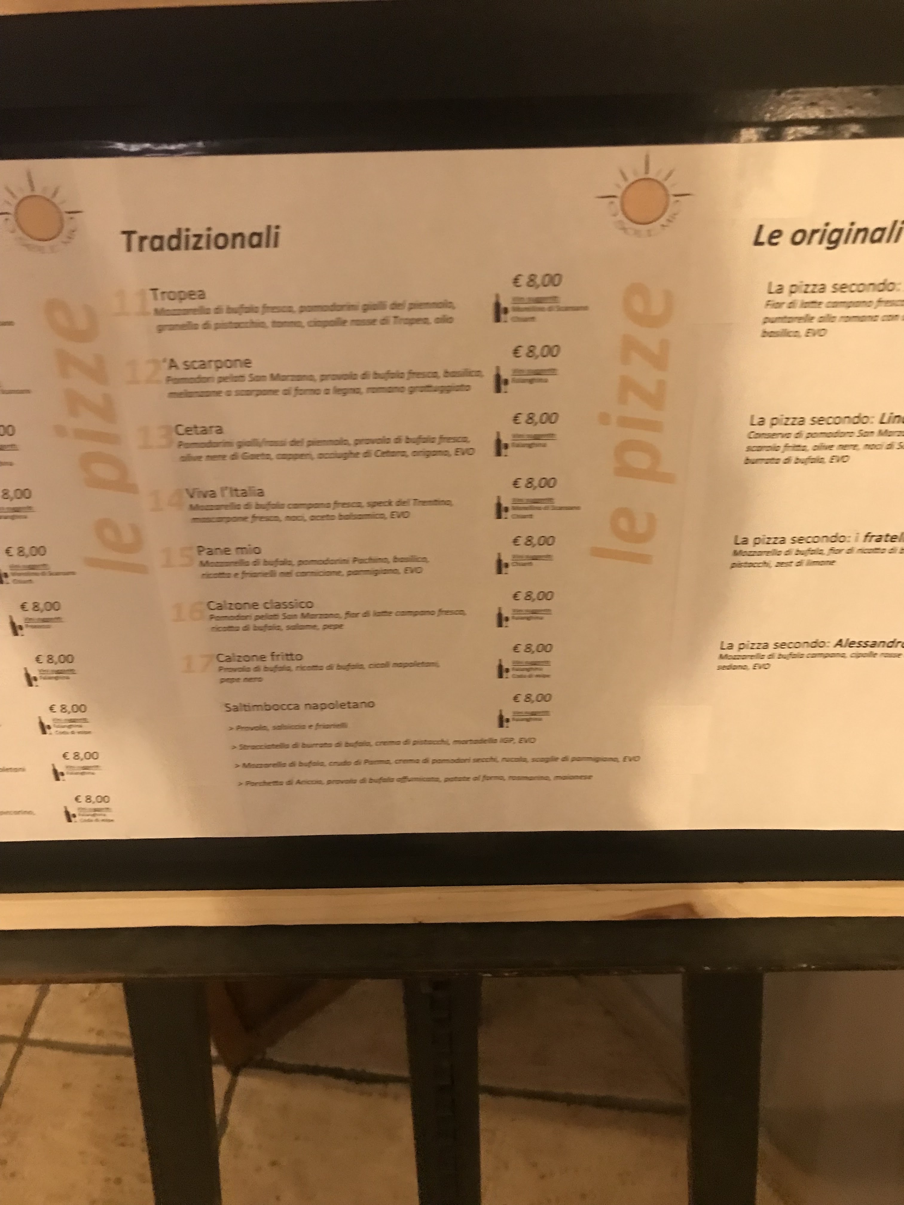 💬 Un choix de pizza impressionnant, il faut 15min pour tout lire. Sinon les pizzas sont très bonnes. Quelques autres plats disponibles (pattes et viandes).