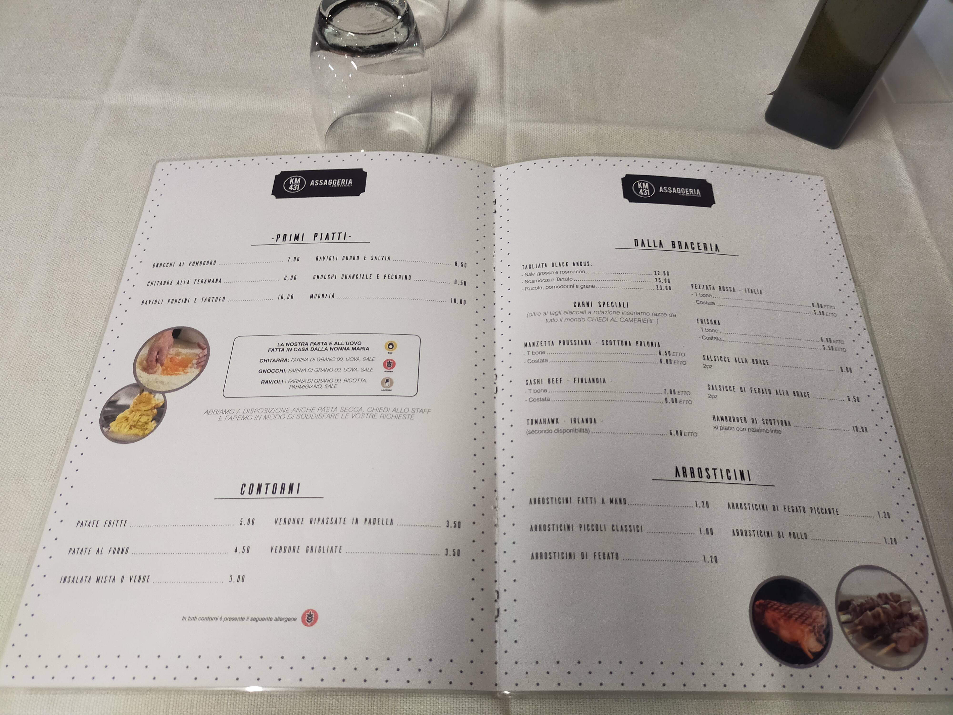💬 Le bar était bon, sinon j'ai été un peu déçu. 140 € pour 5 personnes, nous avons commandé 2 entrées mixtes, 4 entrées, une dégustation de bar pour tout le monde, deux bouteilles de vin. Commençons par le service, même si la salle était quasiment vide, 3 commandes sur 4 sont arrivées mal. Les entrées étaient ok, copieuses, mais je m'attendais à un peu mieux, les entrées (hormis le fait que j'avais spécifiquement demandé des spaghettis et non de la guitare) je les trouvais trop salées et parfumées, finalement le bar était décidément bon, on pouvait dire que c'était frais et de qualité. Je tiens à préciser, comme me l'a fait remarquer le propriétaire, que les photos des entrées et des entrées composées dans les assiettes ont été plaquées par mes soins, et ne représentent pas les quantités des portions réelles qui étaient sans doute très généreuses car je avait prévu lors de l’examen initial. Les photos des entrées « simples » représentent plutôt la portion pour 2.