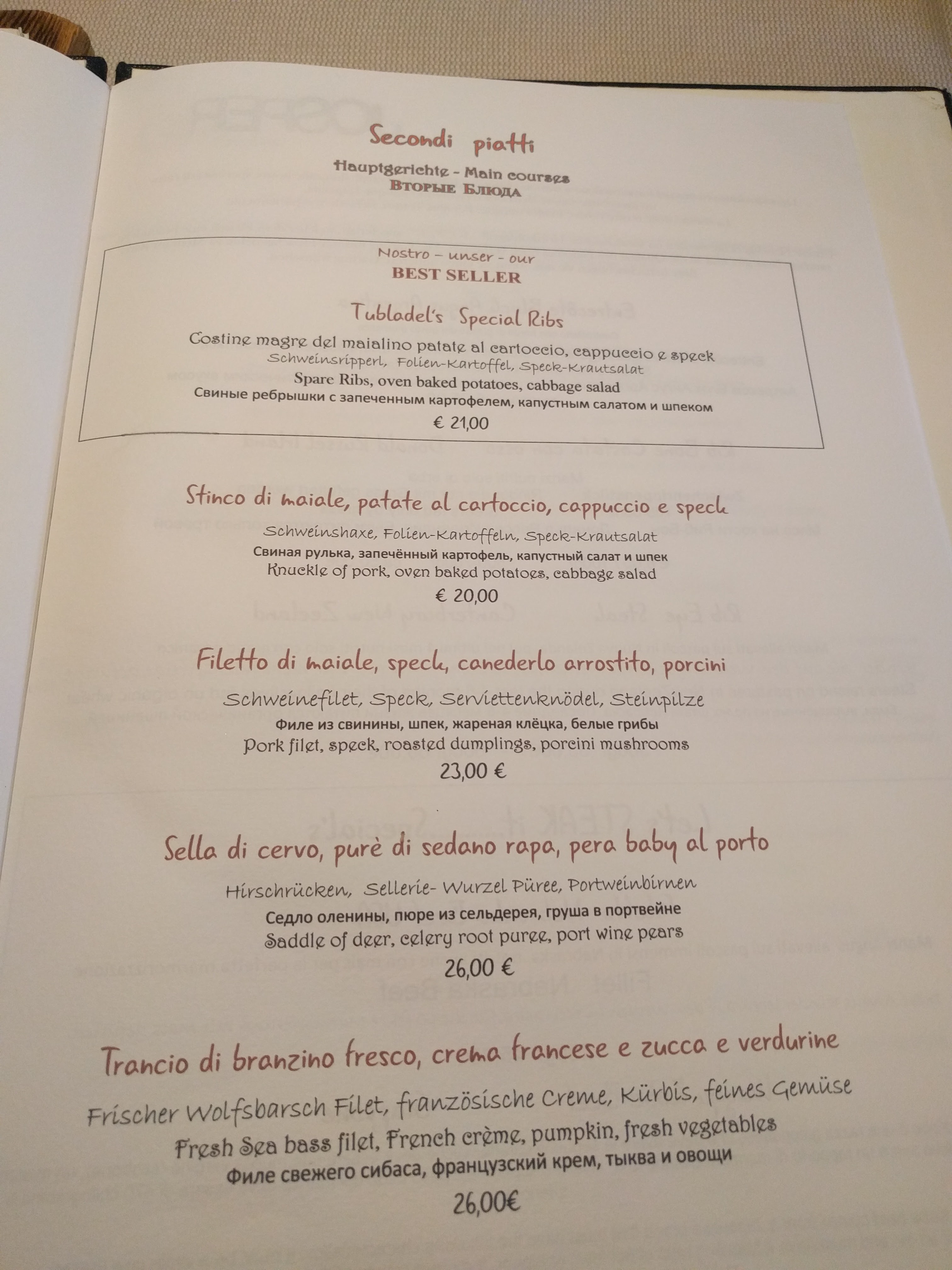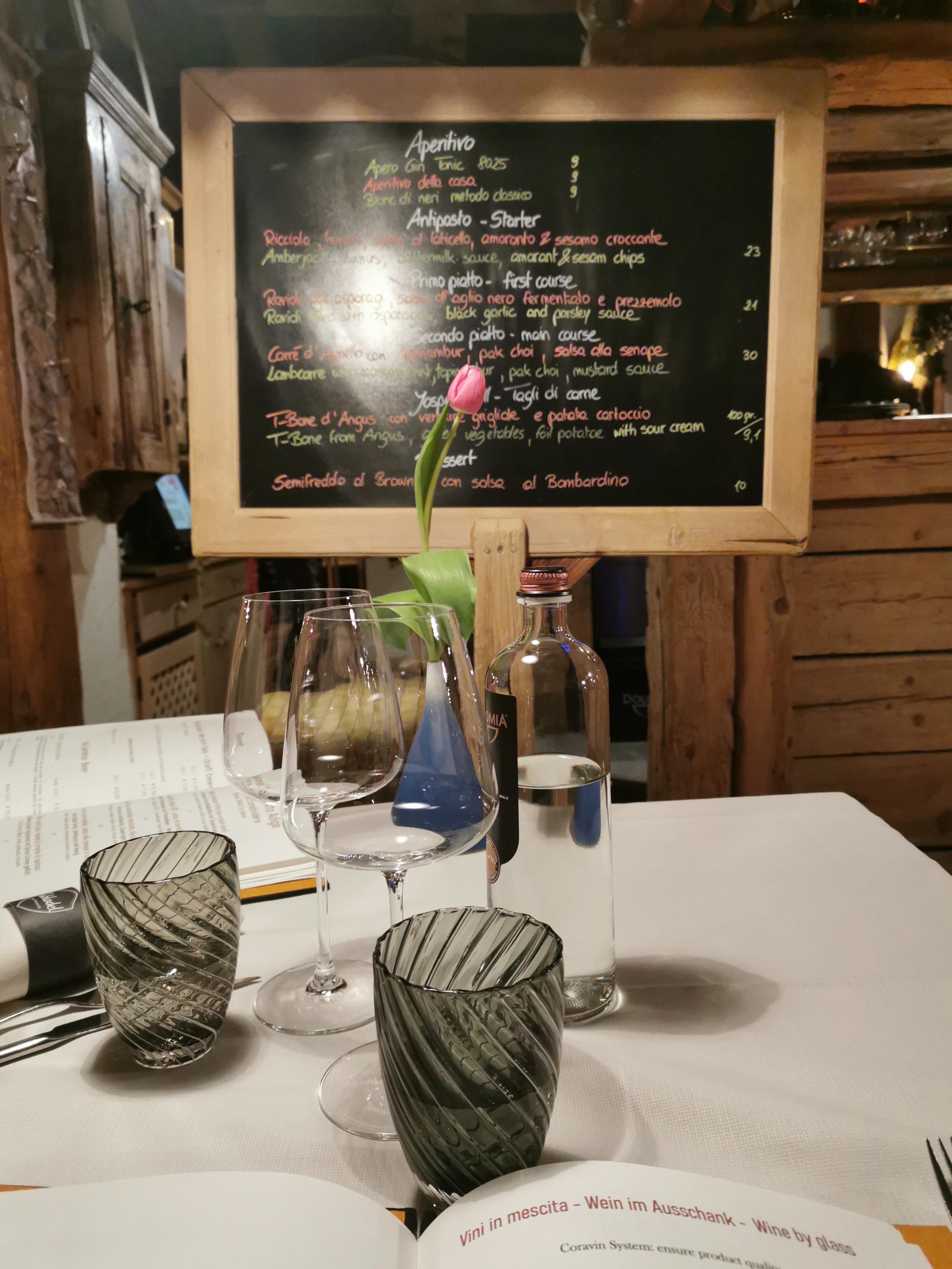 💬 Très bon moment. Les plats sont délicieux, les quantités sont bien adaptées (plat + dessert) et les serveurs nous apportent conseils et bonne humeur tout au long du repas. Bref si vous passez à Canazei je vous recommande de vous attarder quelques heures à l’une de leurs tables!