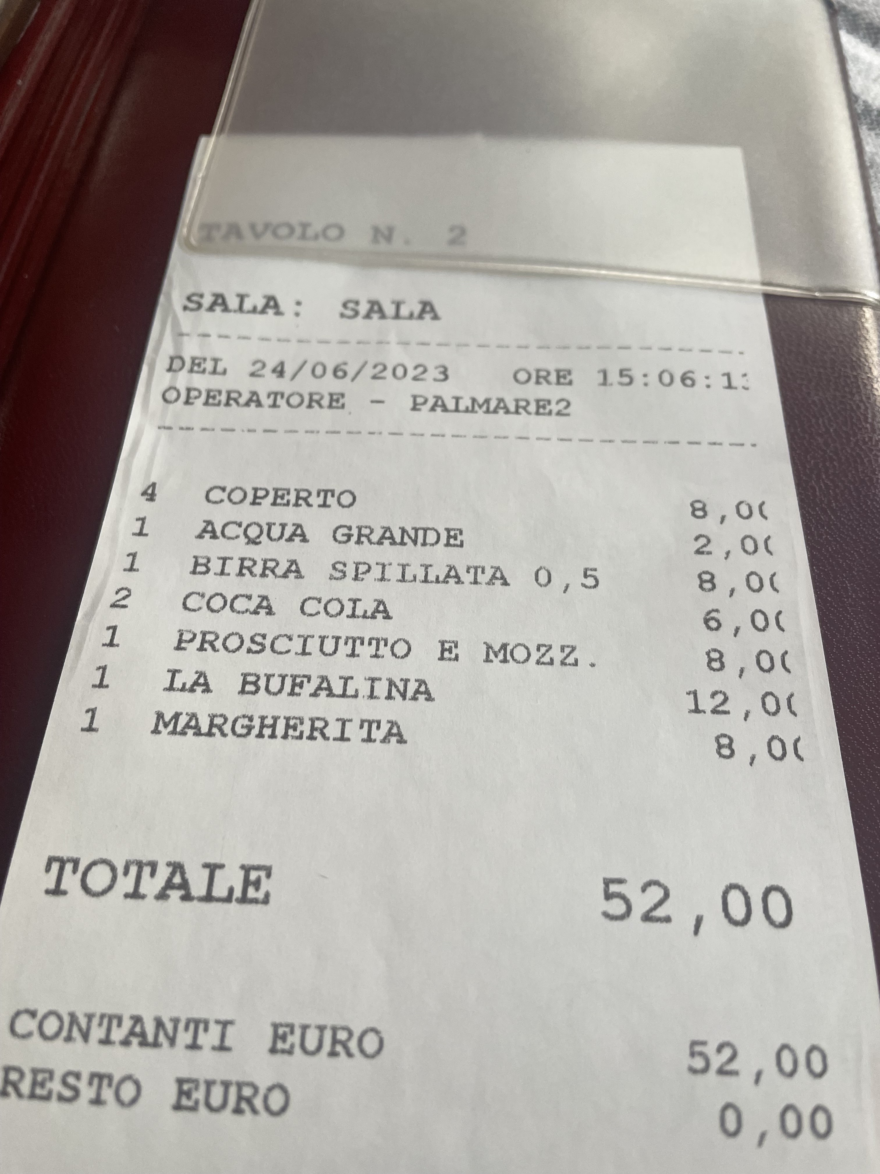 💬 Véritables escrocs ! Malgré la bonne qualité des plats, le serveur nous a servi une petite entrée (mozarella, tomates, oeufs) qui a été facturée 144 Euros. Nous étions 8 à table pour manger uniquement des pizzas sans dessert : prix total 288 Euros ! Évitez cet établissement !