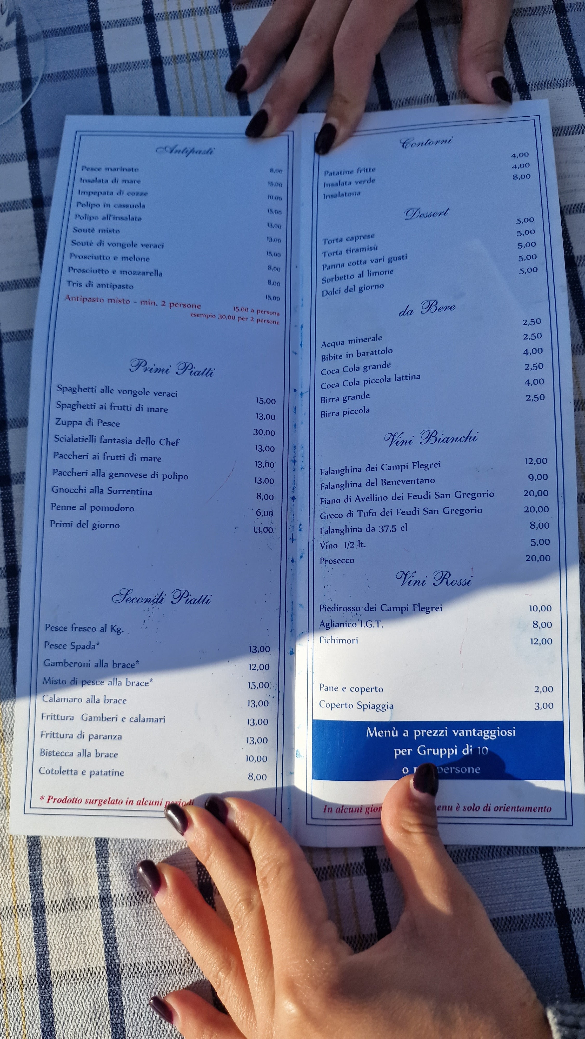 💬 Lieu caractéristique avec tables sur la marina de Bacoli, qui offre une belle vue. Personnel sympathique, menu (comme prévu, il est principalement à base de poisson) avec un choix pas très large. Bonne entrée mais très médiocre vu le prix que l'on paye, entrée bien cuisinée (cuisson et assaisonnement au top) mais aussi pour l'entrée le même rapport prix/quantité est à revoir. Le deuxième plat était la "soupe de moules portugaise", bien réalisée avec le juste équilibre de saveurs (entre oignon, poivron et tomates cuivrées...chapeau), ici le rapport qualité/produit/quantité est excellent (ça mérite plus). La carte des vins qu'il propose est vaste. En conclusion, on peut y aller pour la beauté de la vue et du lieu, ainsi que pour la bonne cuisine, malgré les défauts des portions.