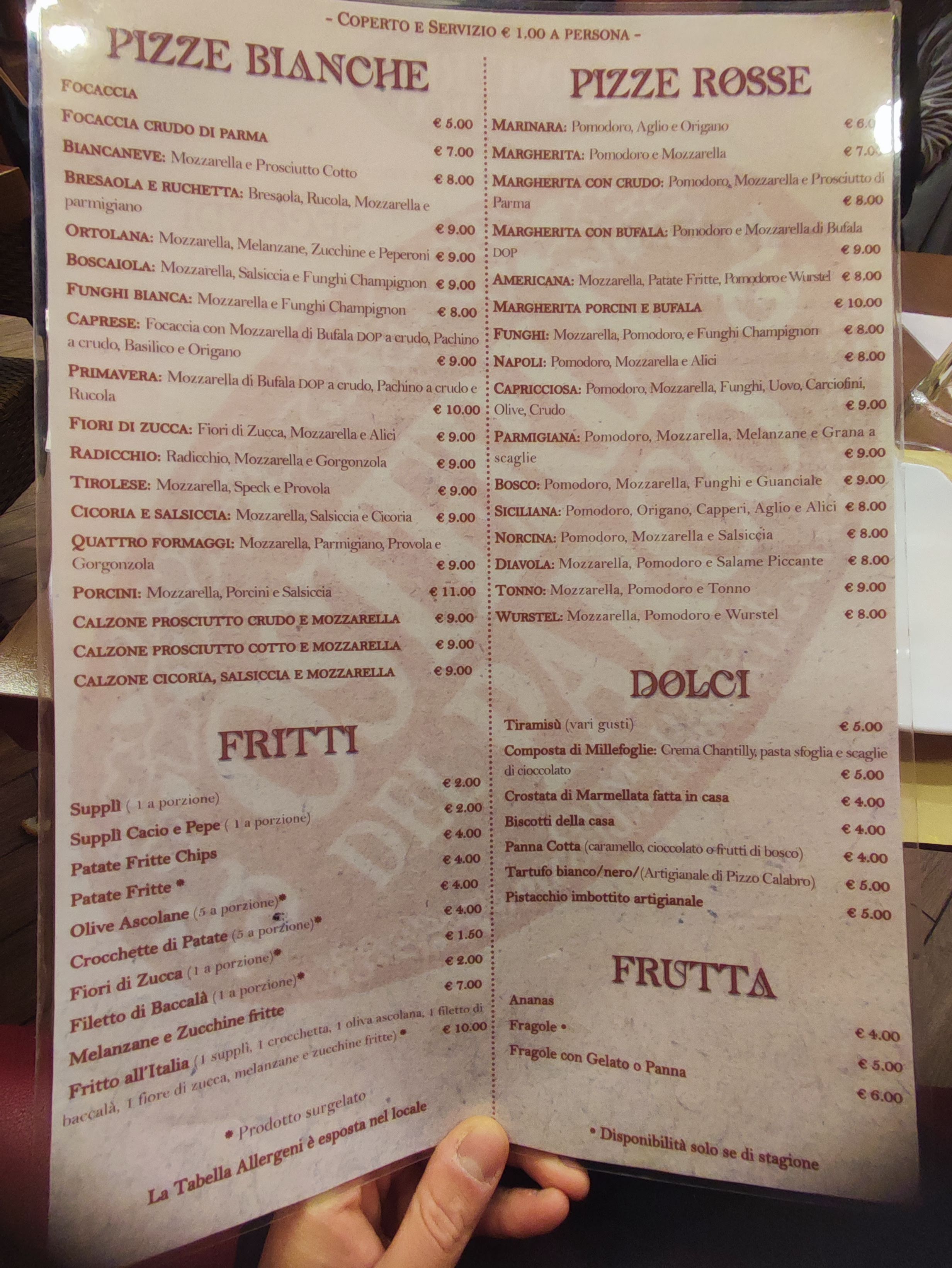 💬 Petit restaurant sans défaut. Le prix des plats est excellent par rapport aux aliments apporté (moyenne de 10/12€ pour les plats de pâtes et 14/15€ pour les plats principaux), la nourriture est bonne, lees quantités sont juste et le service est top. Compter 1€ pour le service ce qui est peu en comparaison d'autres restaurents. Si vous cherchez un petit restaurant italien abordable je vous le recommande sans hésiter.