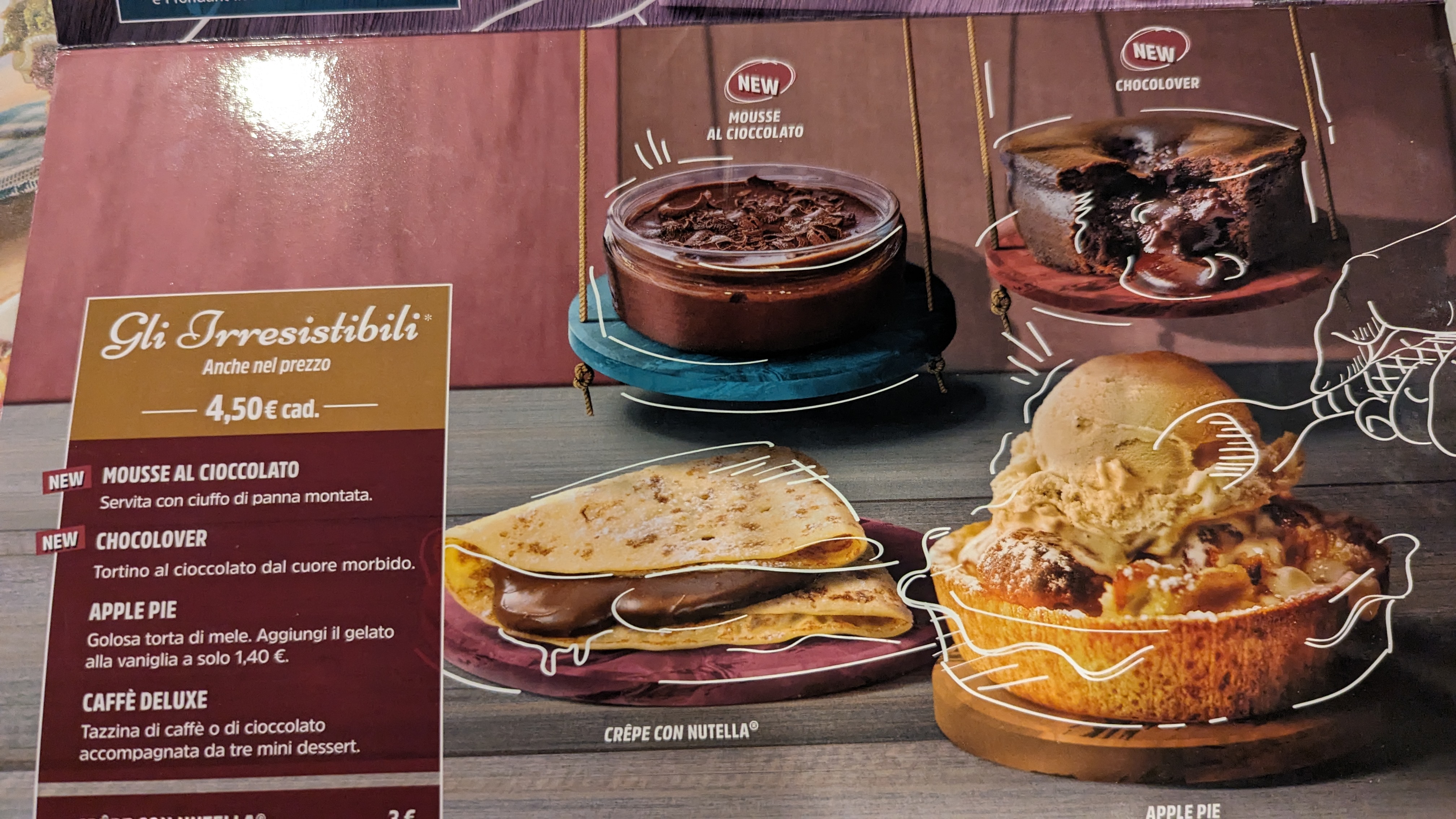 💬 Installer entre une penderie, la cuisine et une fenêtres ouverte (avec 5°a l'exterieur). On a été reçu de façons mitigé. A l'arrivée des plats (pizza) elle était pleine d'eau et tiède, le goût n'avais rien d'exceptionnelle. A la carte des desserts la moitié n'étais pas disponible. Je pense que d'autres alternatives sont à envisager.