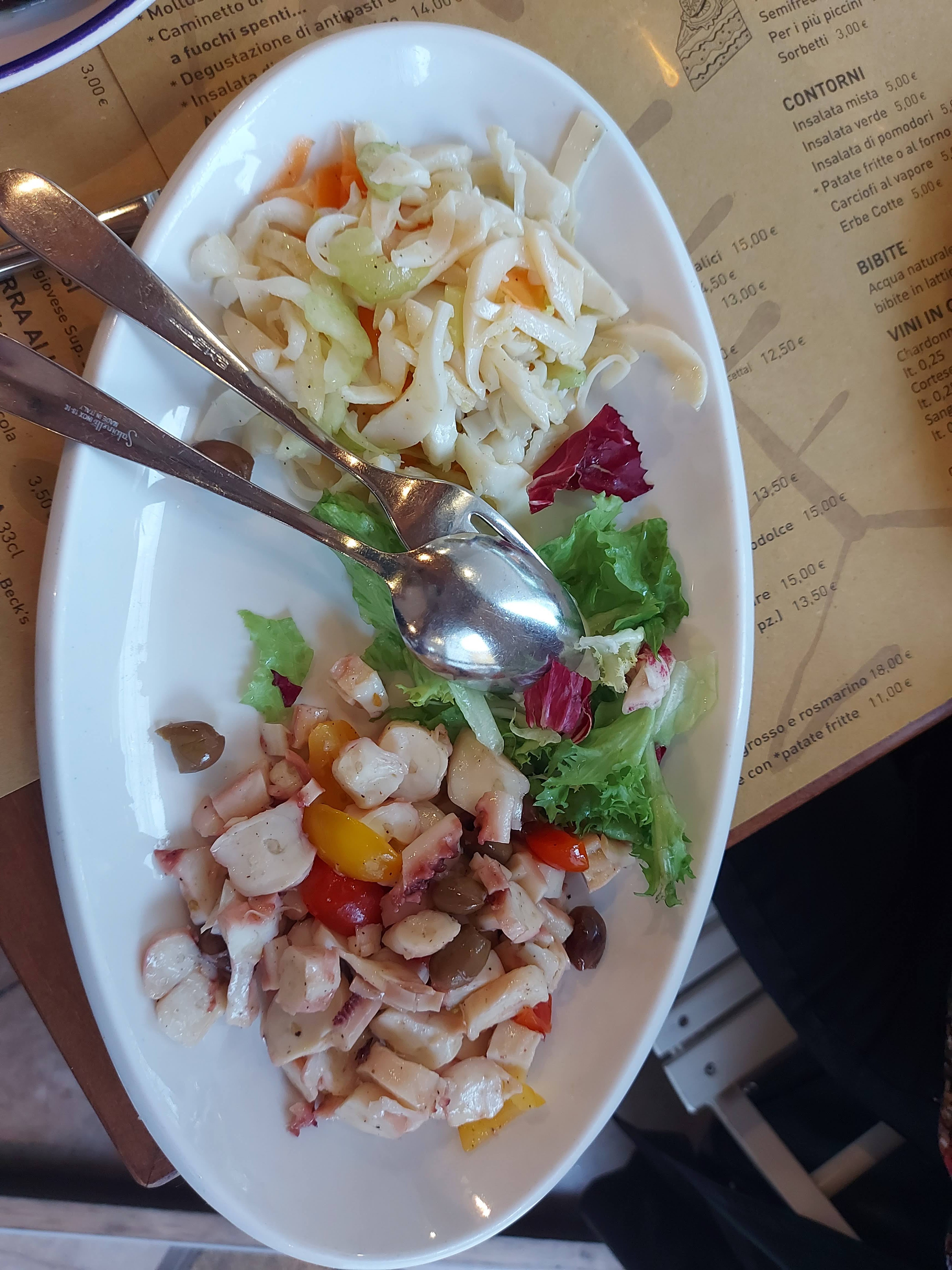 💬 Divin l'entrée de "crudo del mare" avec des écrevisses, du thon, des langoustines; le service est très soigné et la terrasse bien ombragée. Je recommande vivement le poisson cuit au four dans une croûte de sel, un régal.