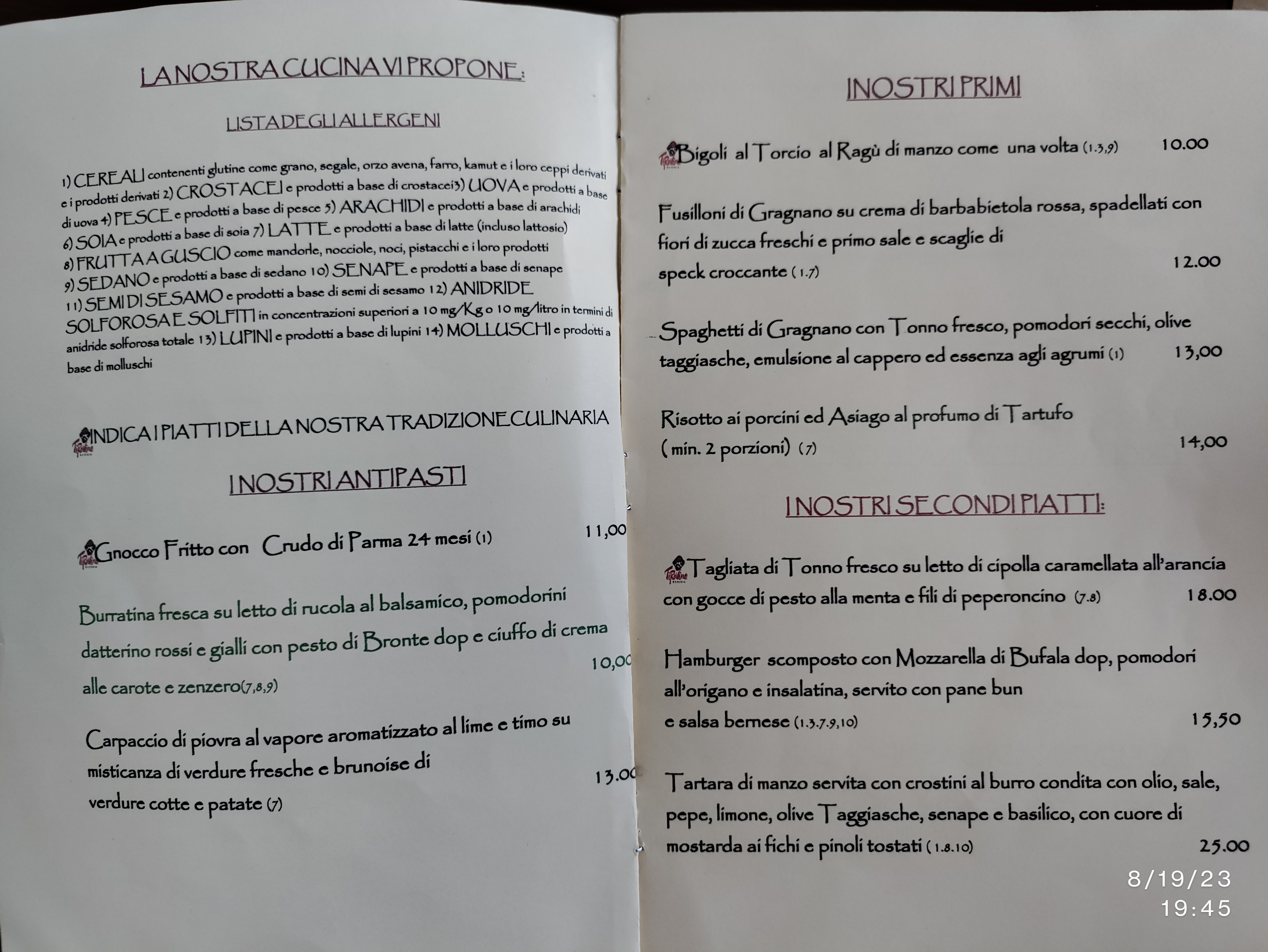 💬 Je suis passé pour la première fois devant une papeterie à Limena, en revenant à la voiture, je remarque une enseigne qui semble avoir un nouveau nom, et cela m'inspire à visiter et à déguster : LAMAREA - Boulangerie avec cuisine - Wine & Lounge. Ma famille me dit que j'ai le nez pour les endroits qui le méritent, pas de photos cette fois, mais fermez les yeux et imaginez : deux belles pièces de focaccia d'un peu plus de deux doigts de haut, avec des légumes grillés et de l'ossocollo ou soppressa vénitienne, accompagnées de un verre Mr. Classy d'un Pinot Grigio du Sudtirol (Eppan - Appiano) et puis, avec un changement de verre approprié, un Bourgogne Pinot Noir Côte Chalonnaise avec deux autres morceaux de focaccia... que dire ? Après avoir enquêté auprès du barman sur les horaires du déjeuner, de l'apéritif et du dîner, j'ai photographié la carte de visite et après leurs vacances (1er-9 janvier) je me suis organisé pour un dîner de poisson, avec une préférence pour le cru 😉😁😋