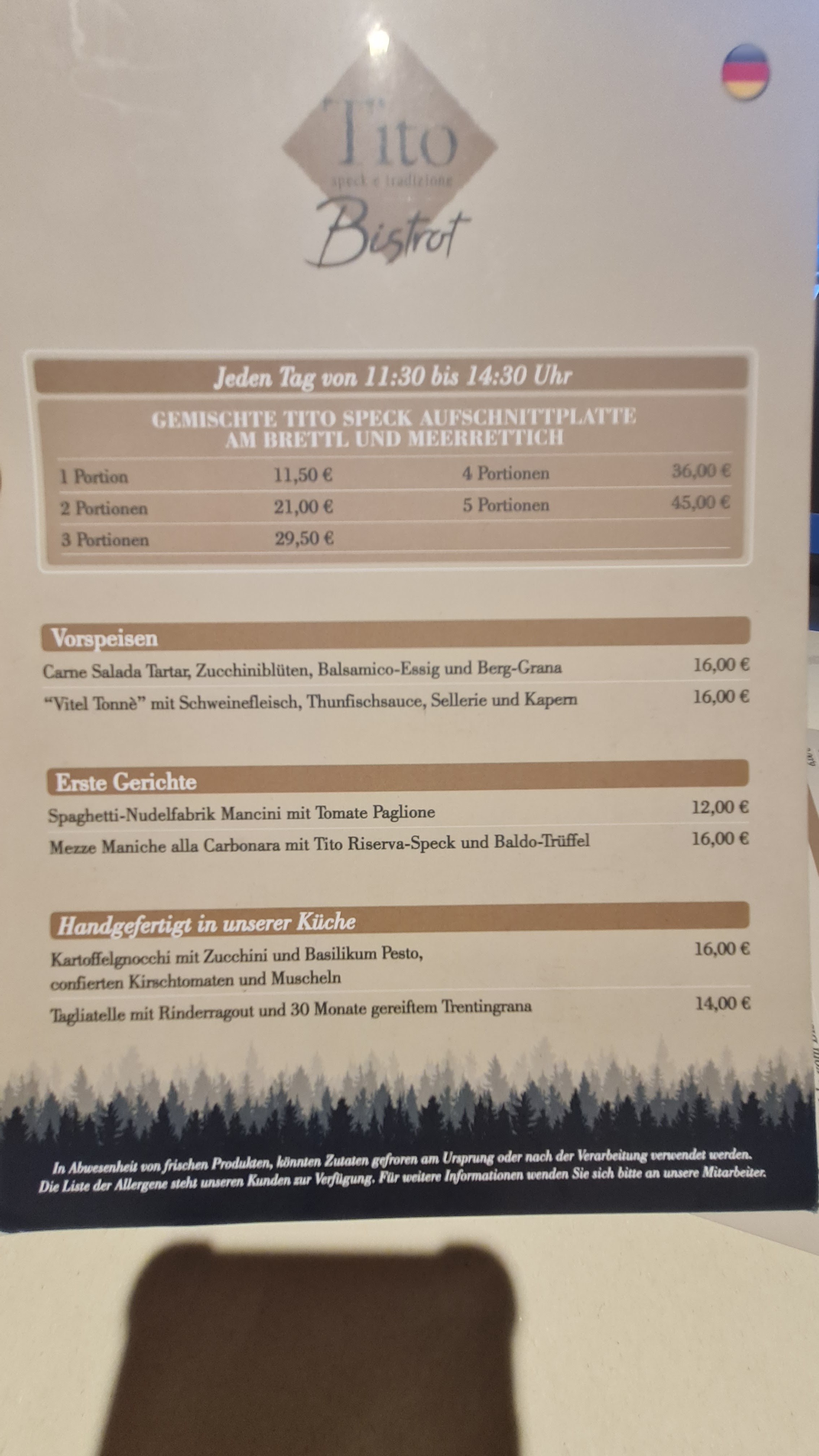 💬 Très bel emplacement, dommage pour la qualité du service, inexistant. Accueil moyen et mauvaise atmosphère, la terrasse n’est pas chauffée, le peu de client sur place mangeait avec leur veste … La pizza était totalement froide et sans aucun goût, un peu d’épice ne serait pas de refus. Il y avait 4 tables de prises sur tout le restaurant mais la qualité du service n’était pas la. Passez votre route, il y a de bien meilleur endroit pour manger de vraies pizzas à Molveno.
