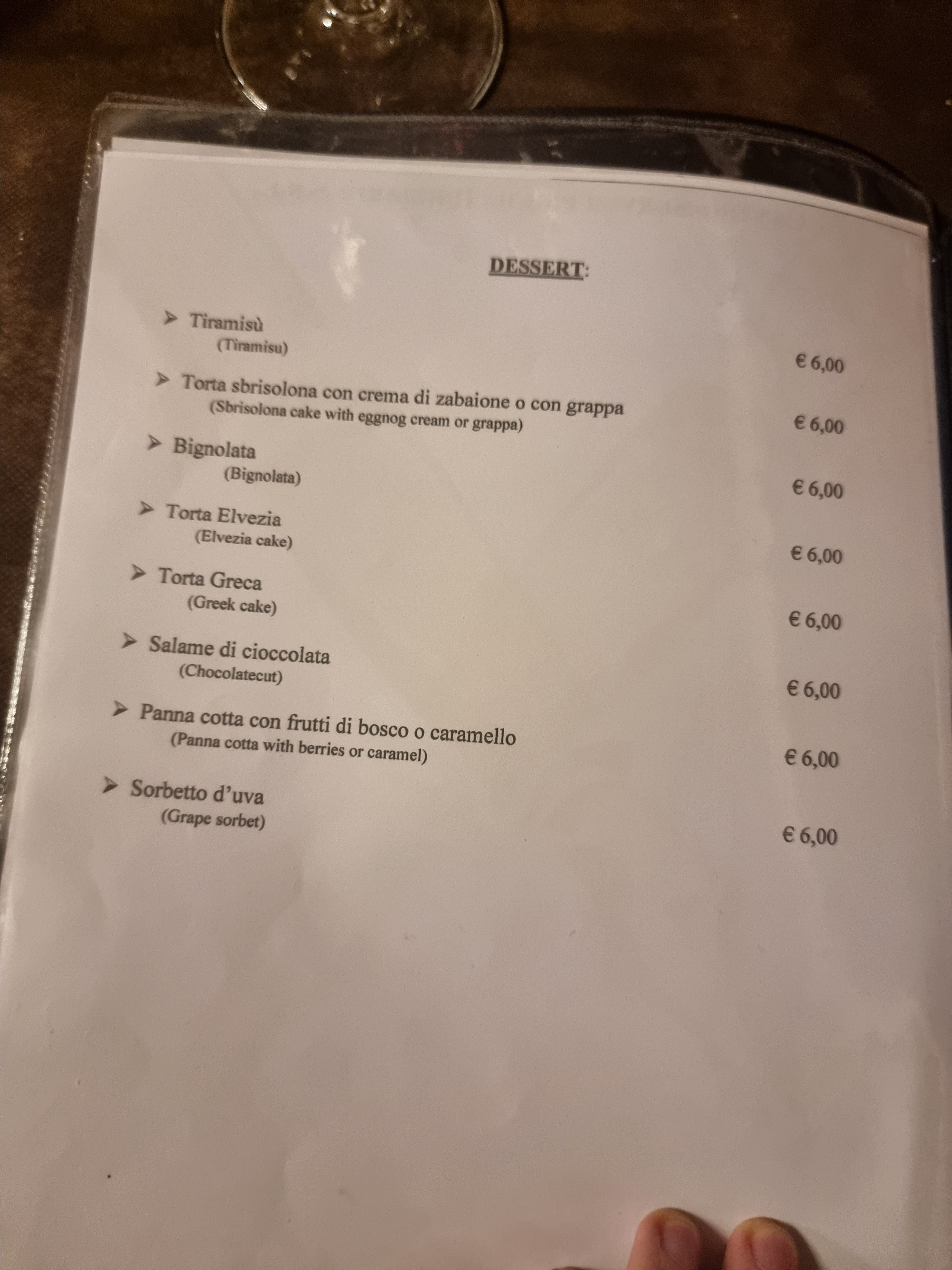 💬 Accueil plutôt frais, la restauratrice de préoccupant plutôt des habitués ! Fort heureusement notre serveur italien parlait bien le français et il nous a bien conseillé pour le repas. Nous avons consommé du Vermentino au verre. Attention tout de même car j' ai été arrêté par les carabinieri pour contrôler l'alcoolémie.