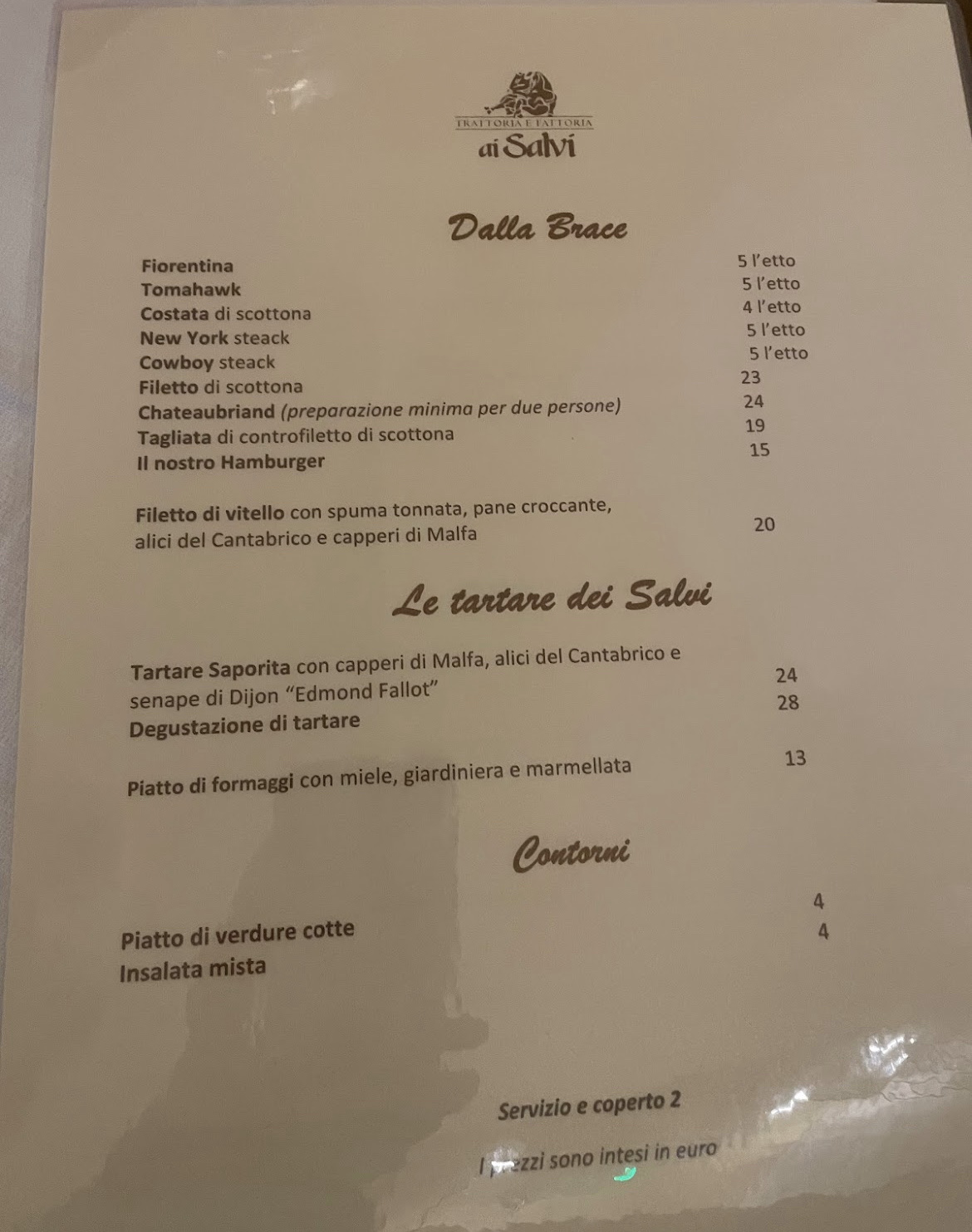 💬 Nourriture excellente, la tagliata était superbe. Le vin était fantastique. Le personnel était super. Seulement un peu lent aux heures de pointe.