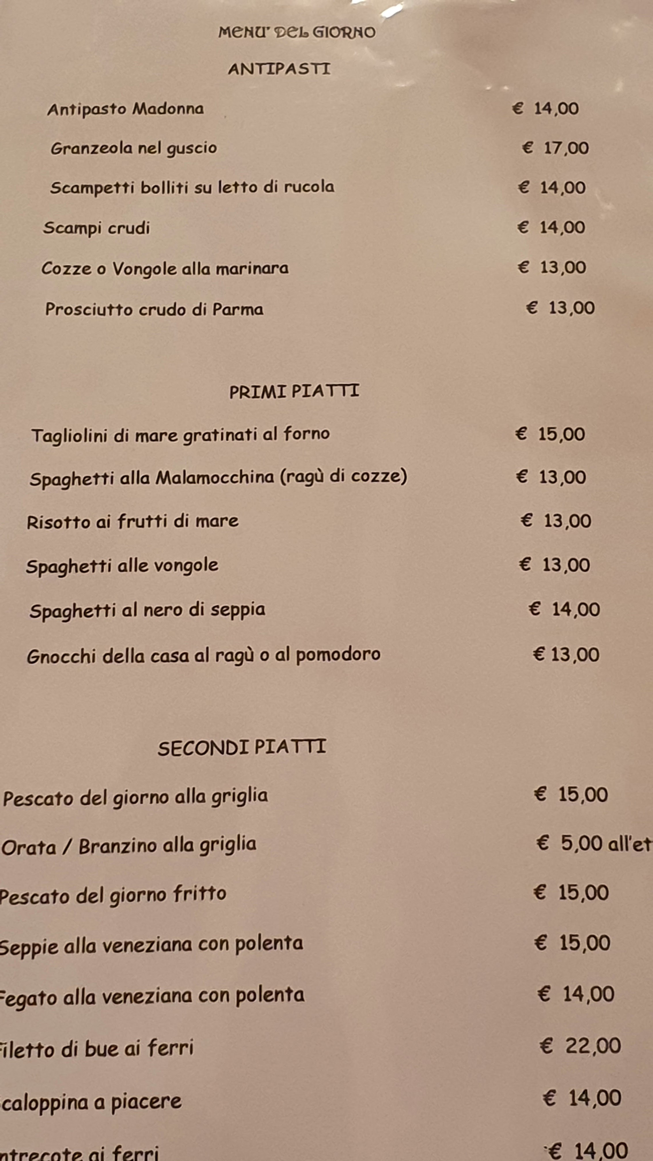 💬 Avons déjeuné ici pour notre dernier restaurant à Venise et nous avons été très satisfait. De prime abord, le restaurant semble bondé car il y a beaucoup de personnes qui consomment des cichettis devant et dans la première salle. Cependant, une deuxième salle réservé au restaurant se trouve derrière. Nous avons adoré notre repas (poulpe à la tomate, pâtes aux palourdes et fritures de la mer). Le personnel est très sympathique. Tarif convenable et bien moins cher que certains restaurant de la ville, pour une qualité au top.