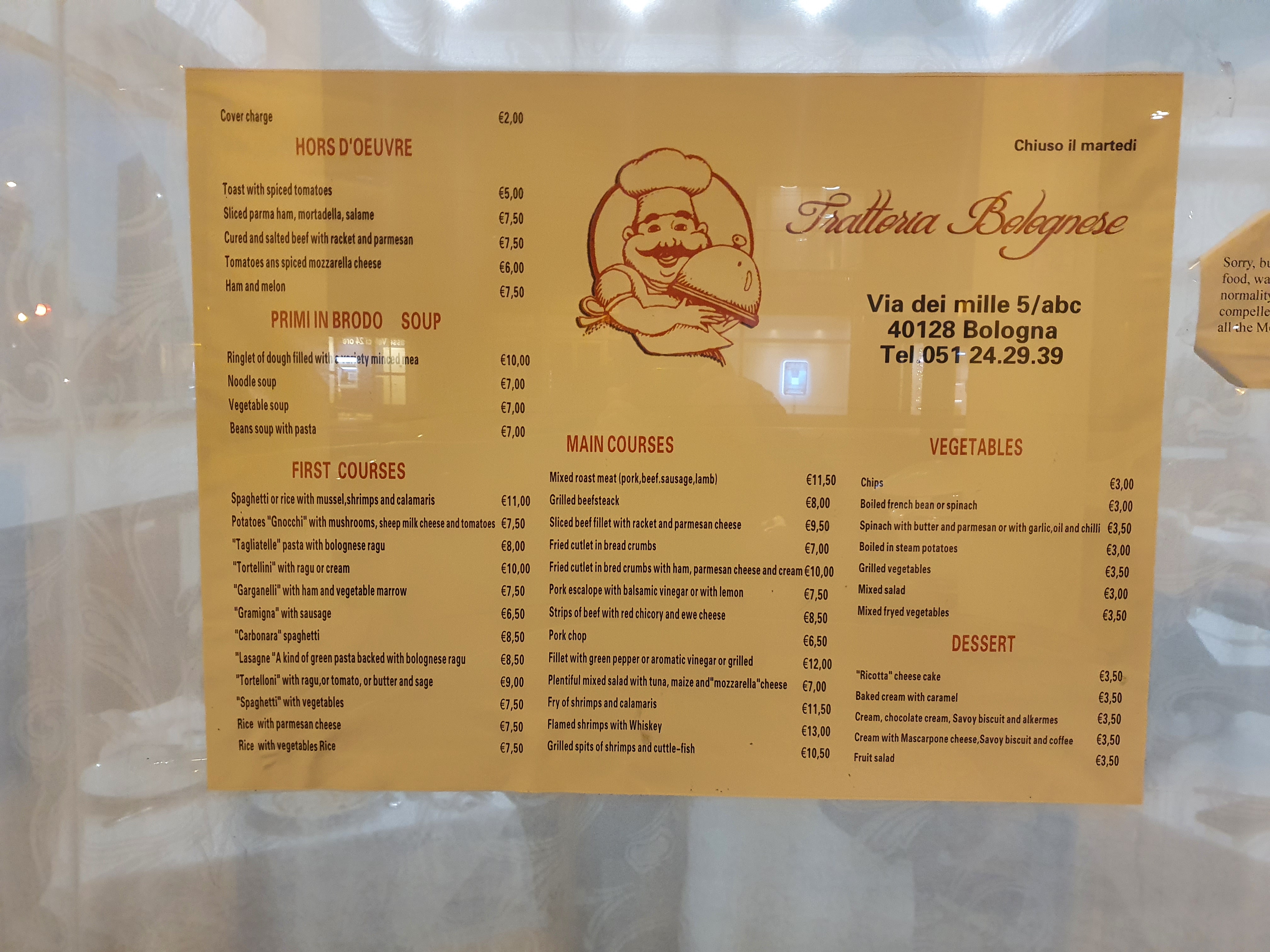 💬 Nous avons pris notre premier repas à Bologne dans ce restaurant. Les charcuteries étaient super bonnes ainsi que les lasagnes et les pâtes. Il pleuvait cette fois-là donc le restaurant n'était pas si fou.