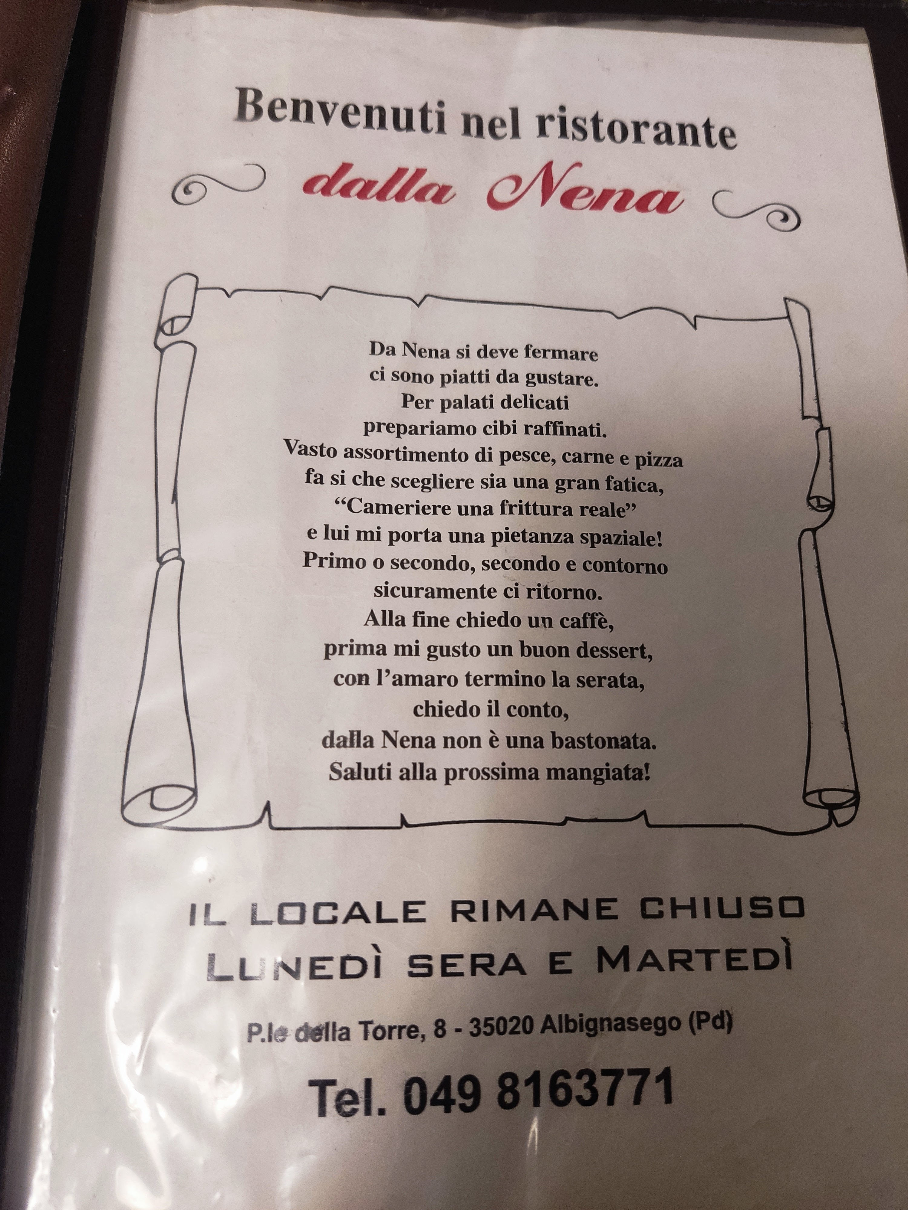 💬 Restaurant situé à l'entrée du hameau de Chiesuola dans la région de Brescia. Le restaurant, raffiné et classe, dispose d'une grande salle bien ordonnée avec des fresques aux murs avec des paysages et des décorations florales. La carte est riche et propose de bons produits locaux (et non locaux) d'excellente qualité, d'excellents paccheri au ragù de poulpe et du poisson frit. Le seul défaut que j'ai pu trouver concerne le service, avec un temps d'attente initial un peu plus long que nécessaire. Certainement une note de mérite envers le personnel, qui était extrêmement courtois et serviable. Il y a aussi la possibilité de pouvoir profiter de leurs menus fixes à des prix beaucoup plus abordables. Extrêmement recommandé.