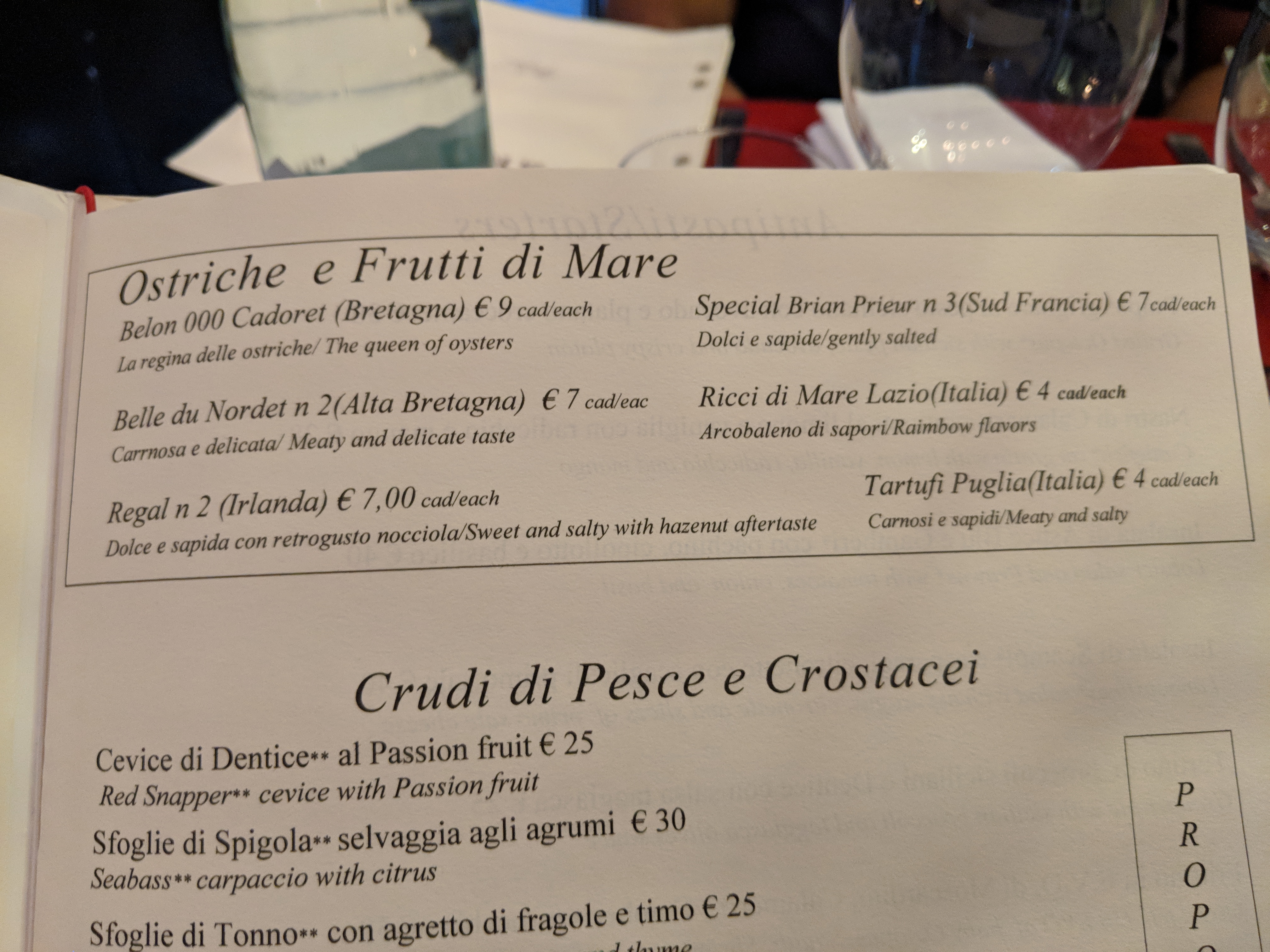 💬 Cadre très romantique, personnel sympa. Un peu cher mais bon. Très généreux dans le verre du vin du patron et prosecco très bon.