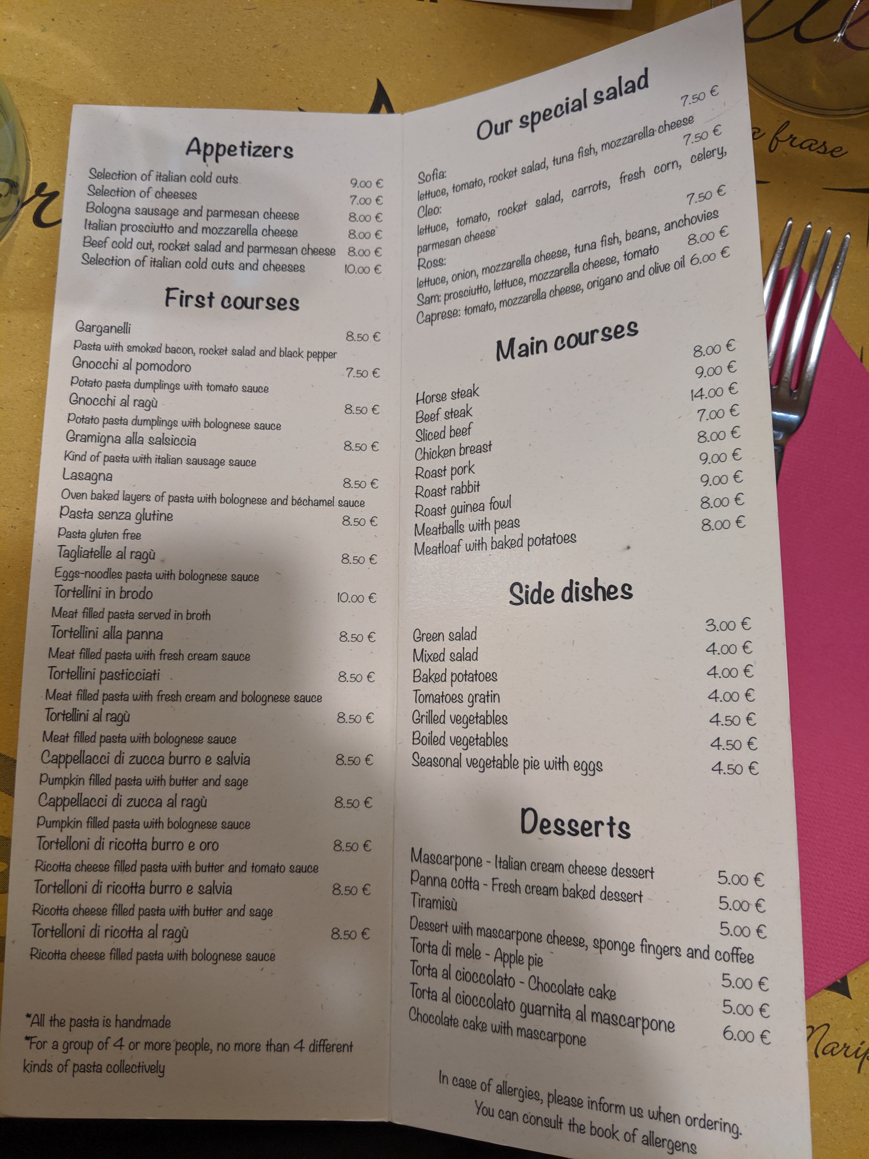 💬 Service déplorable! Nous voulions une pizza et ils n’en faisaient pas. Nous avons donc pris autre chose et l’attente à été très longue (2h) pour une entrée de Panzerotti et deux assiettes de Gnocchi…