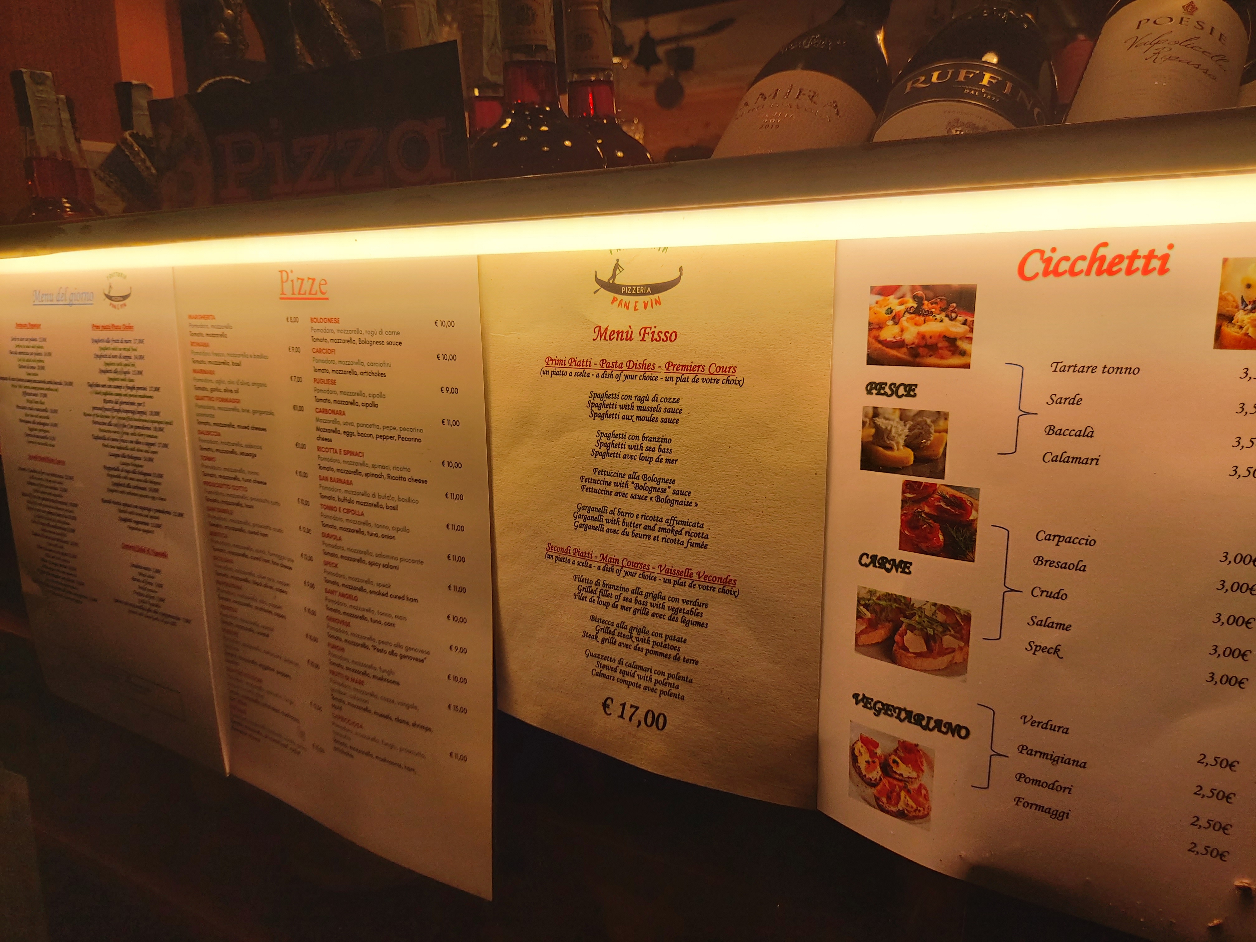 💬 Osteria typique de Venise , ambiance cantina, bruyante et festive( à savoir si vous n’appréciez pas ça) Cuisine simple, planche de charcuteries et de fromages,polenta avec différentes sauces, thon fumé en tranches, super bien servie, grand choix de vin. Service sympa( sauf la blonde qui ne raffole manifestement pas des touristes et des enfants…)