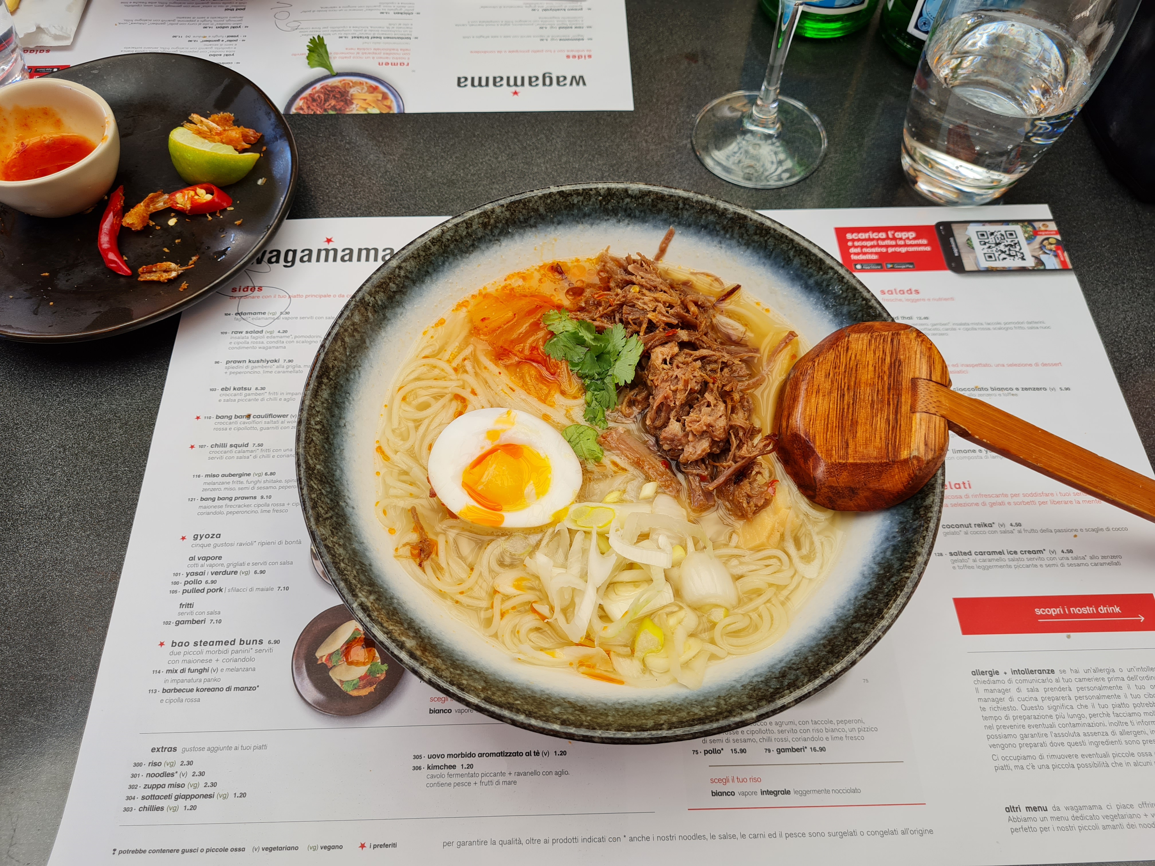 đŹ Nous avons dĂ©jeunĂ© dans cet endroit un dimanche midi, sans rĂ©servation, dĂ©cidĂ©e aprĂšs passage. Nous avons dĂ©jeunĂ© sur une table pliante et des chaises placĂ©es devant un mur en polystyrĂšne. La nourriture Ă©tait bonne, le vin, dĂ©gustĂ© deux verres de Ghemme il Chiosso pas sublime, l'addition Ă©levĂ©e. Une tagliatelle sauce sanglier, deux assiettes de polenta au sanglier, une portion de cantucci et un petit verre de vino santo, deux verres de vin, une bouteille d'eau pet 0,50 au prix de 79 âŹ. Peut-ĂȘtre que nous y retournerons, peut-ĂȘtre pas.