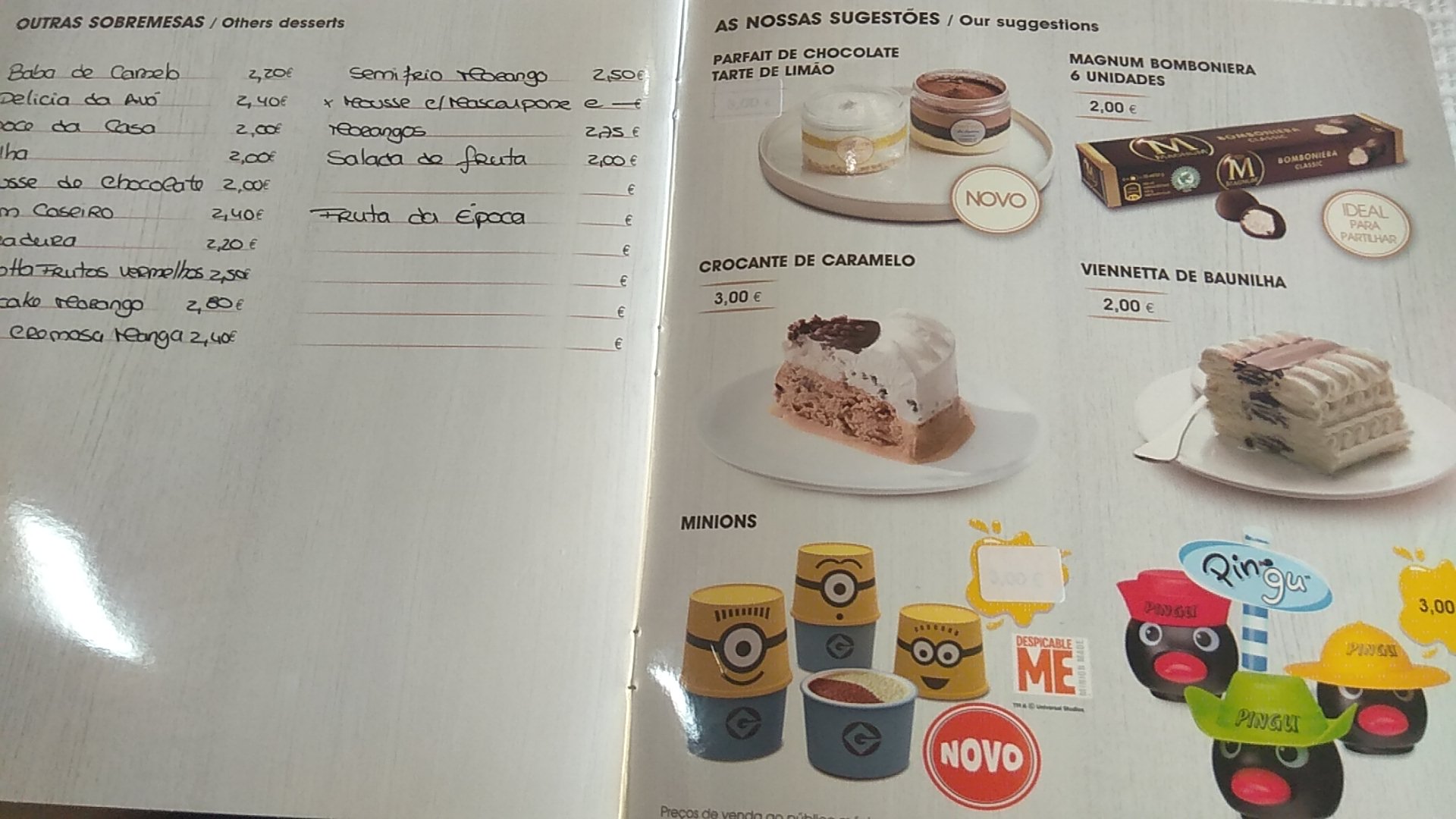 💬 Un buffet à volonté avec entrées, plats et desserts. Boisson et café compris. 10€ pour les adultes et 5 € pour les enfants. Le dimanche midi (15€ et 7€50 ) c'est plein. Pensez à réserver. Cuisine traditionnelle portugaise très bonne.
